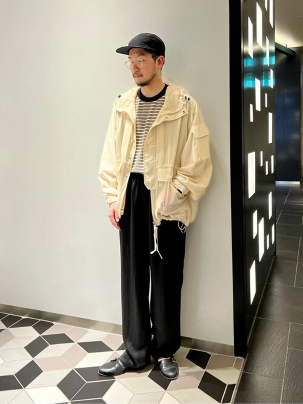 30代中盤 / 身長:170cm / 体型:標準体型 / 普段サイズ:M 透け感のある生地が特徴のブルゾン。柄物をインナーにして、生地の特徴を活かしています。 【Product Twelve / プロダクト トゥエルブ】Rain Jacket 着用サイズ:2 ---------------------------------------------------------- サイズ感:ゆとりのあるサイズ感 素材感 :薄手で軽いが、格子状のリップストップ生地でしっかりしている。多少の雨にも重宝しそう。 ----------------------------------------------------------