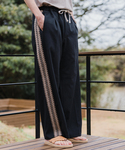 30代前半 / 身長:183cm / 体型:標準型 / 普段サイズ:L ワイドシルエットのイージーパンツ。 Tシャツにワイドパンツとシンプルなスタイリングですが、ウエストの紐がアクセントとなってメリハリをつけてくれます。 ■アルビニスタスムース クルーネック Tシャツ 着用サイズ:L ---------------------------------------------------------- サイズ感:着丈はやや長め、肩幅はややドロップショルダー 素材感 :ジャージ素材なので、程よいハリ感とドレープ感があります 着心地 :ヨレずに綺麗な状態で着用できます ---------------------------------------------------------- ■シャンタン サイドライン ワイド イージーパンツ 着用サイズ:L ---------------------------------------------------------- サイズ感:ゆったりとしたサイズ感 素材感 :春夏らしいスラブ感のある素材感 着心地 :ウエストは紐で調節可能なのでリラックスして着用できます ----------------------------------------------------------