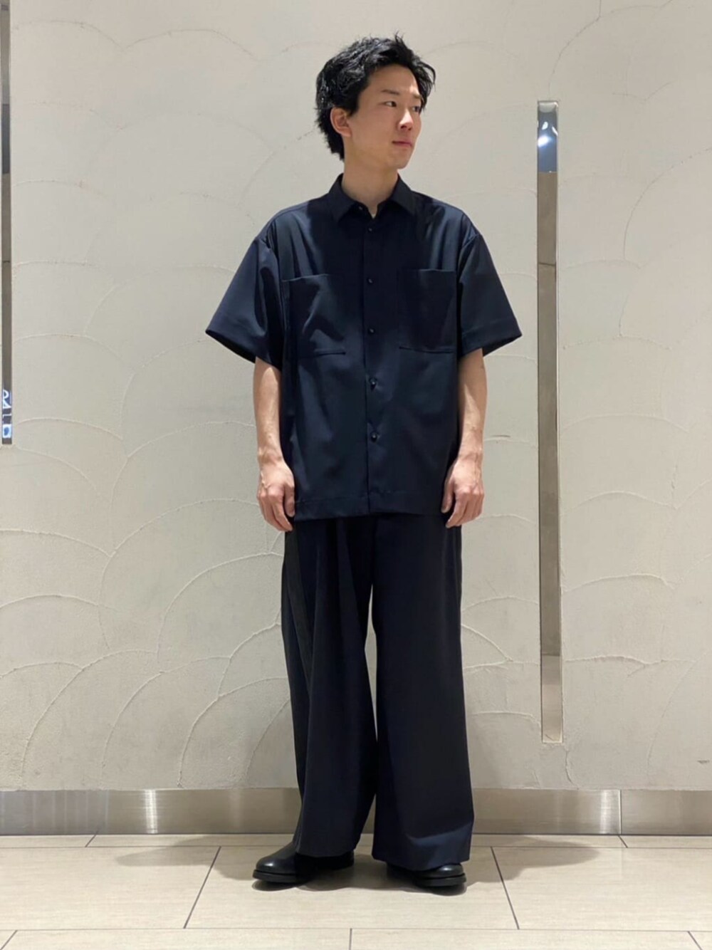 セットアップでオールブラックに全身シックで大人っぽくまとめました。 【CALMER / カルメール】別注 Paulo Oliveira シャツ 身長:169cm / 年齢:20 代/ 体型:標準/ 普段サイズ:M〜L サイズ: 身幅があるサイズ感 素材感:光沢があって軽い 着心地:軽くて身幅があるので着やすい