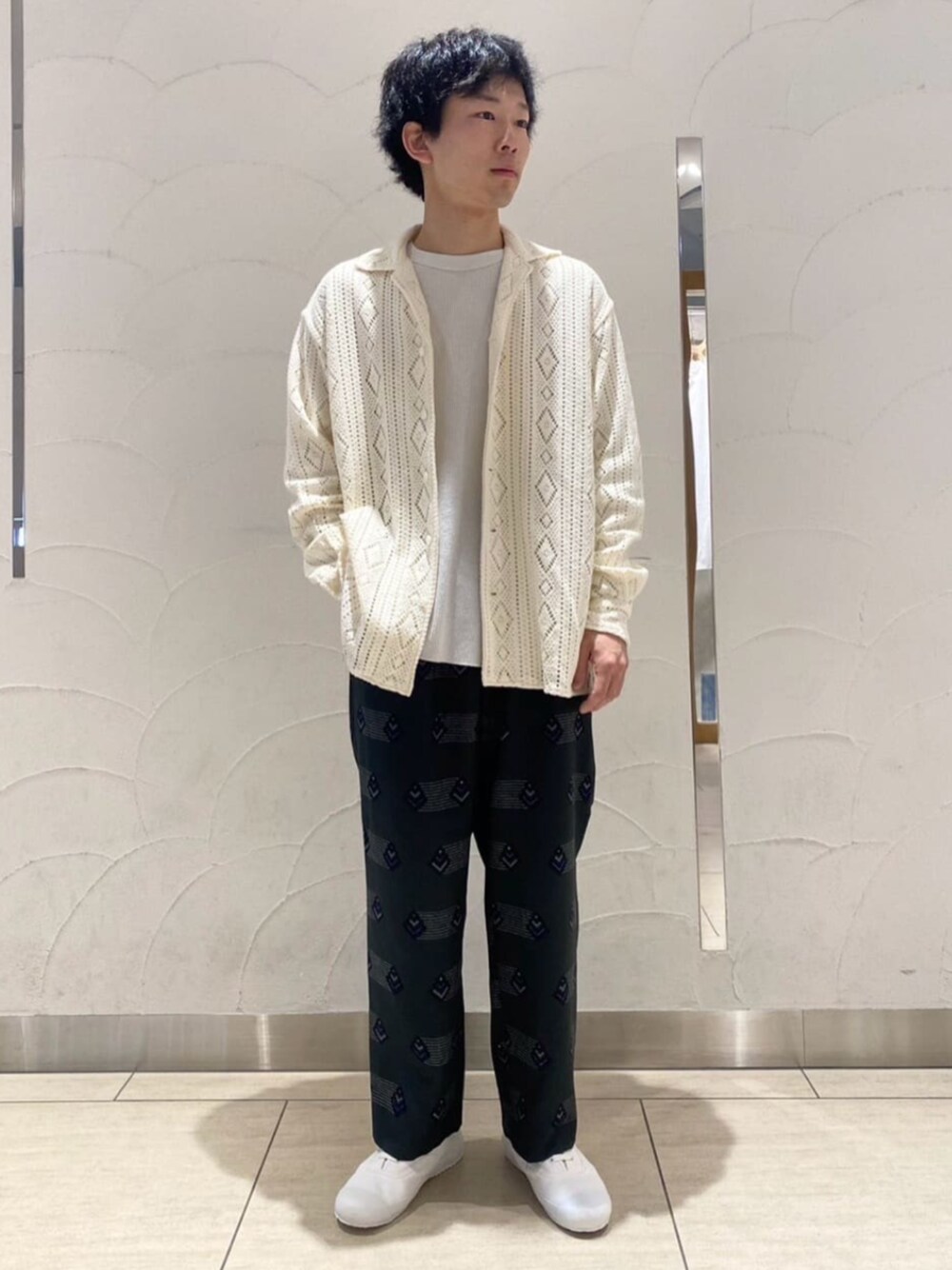 パンツをジャストサイズで履いて、スッキリ感を意識しました。 バティック パターン1タック イージーパンツ 身長:169cm / 年齢:20 代/ 体型:標準/ 普段サイズ:M〜L サイズ: ややゆったり 素材感:シャリっときた軽さのある素材 着心地:軽くて真夏でも履きやすい