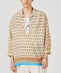 インディア パネル スキッパー シャツ インドの伝統衣装サリー柄のプリント生地を使用。レーヨンのドレープ性と上品な光沢が特徴です。 身長:183センチ/普段サイズ:XL/着用サイズ:L 体型:がっちり体型 サイズ感:Lサイズでジャストサイズ 素材感:しなやかでサラっとした手触りの素材 着心地:全体的にゆとりがあり着やすい