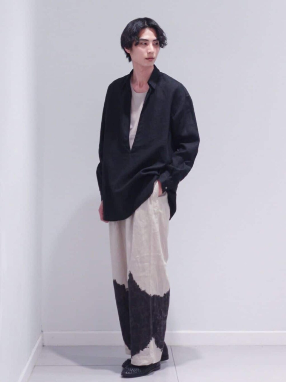 【EDIFICE】 リネン スキッパーシャツ ---------------------------------------------------------- Instagram ⇒ a.a.edy ---------------------------------------------------------- スキッパーシャツを、雰囲気のあるパンツと合わせて。 リラックス感を意識したスタイルです。 ---------------------------------------------------------- 年齢:30代前半 身長:182センチ 体型:細身 普段サイズ:L 着用サイズ:L ---------------------------------------------------------- サイズ感:身長182cm細身の自分がLサイズで程良くゆとりのあるサイズ感。 素材感:軽く、風合いと清涼感のあるリネン素材。 着心地:軽くてサラっとした生地の為、夏場でも快適に着用できます。 深めのスキッパー型は、脱ぎ着する際も髪型の乱れを気にせず着脱できます。