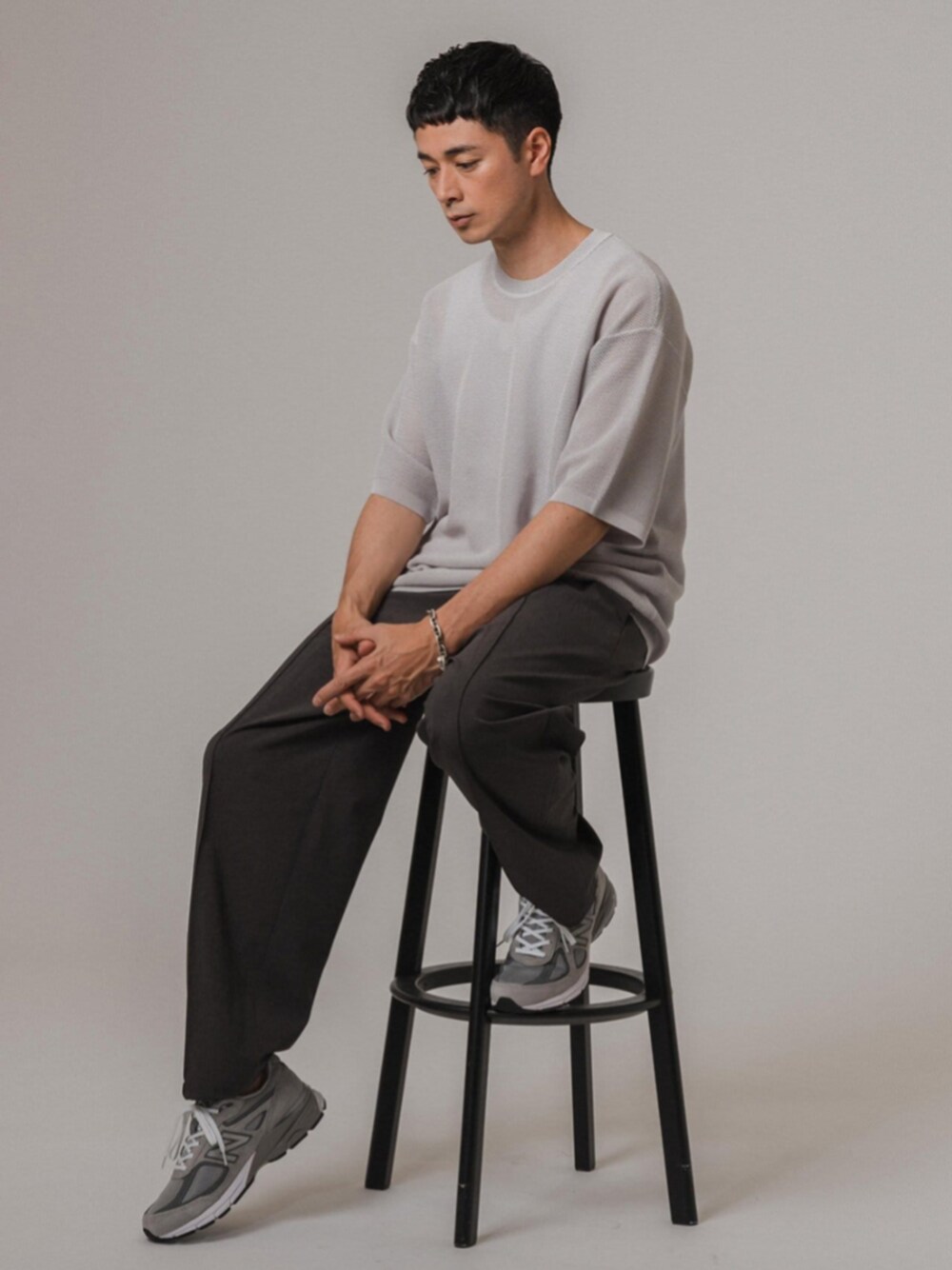 30代後半/身長:176センチ、標準型 / 普段サイズ:L メッシュ編みの半袖のクルーネックのニットTシャツ。 程よい透け感が楽しめるサマーニットなので、Tシャツに頼りがちな夏のスタイリングのバリエーションとしておすすめ。 今の時期はTシャツに重ねて、真夏はタンクトップに重ねたりとスタイリングの幅も広がります。 ■ドライメッシュ リラックスフィット ニットTシャツ 着用サイズ:L ---------------------------------------------------------- サイズ感:余裕のあるゆったりとしたサイズ感 素材感:ソフトな質感ながら肌触りはドライな素材 着心地:分量感が少ないので軽く、メッシュ状の素材なので風通しが良く快適です ---------------------------------------------------------- ■ドライトロピカル バルーンフィットパンツ 着用サイズ:L ---------------------------------------------------------- サイズ感:程良くゆとり感のあるワイドシルエット 素材感 :軽く柔らかさのある素材。 着心地 :裾にかけテーパードさせることで、ワイドシルエットでも足元がすっきりと見えます。 ----------------------------------------------------------