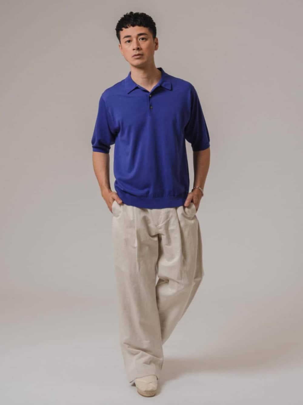 30代後半/身長:176センチ、標準型 / 普段サイズ:L ほどよい大きさのシルエットが大人感を演出するニットポロシャツ。 着丈が長過ぎずないので、ワイドなボトムとも合わせやすいです。 ボタンは一番上を開けて着用すると、首元に程よい抜け感がプラスできます。 ■シルクミックス ニットポロシャツ 着用サイズ:L ---------------------------------------------------------- サイズ感:ほどよい大きさのシルエット 素材感 :シルクミックスですが手洗い可能でイージーケア 着心地 :滑らかで着心地抜群 ----------------------------------------------------------