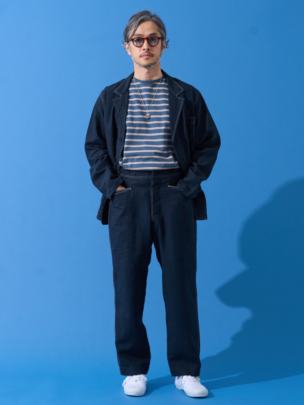 40代前半 / 身長:172cm / 体型:標準型 / 普段サイズ:M ジャケットとパンツのセットアップですが、リネン素材なので程よくカジュアルに着こなせます。 白のステッチがシンプル過ぎず◎ ■BUREAU (ビューロー) LINEN CAMARGUE JACKET 着用サイズ:M ---------------------------------------------------------- サイズ感:ゆとりのあるサイズ感 素材感 :ハリコシ感だけではなくリネン特有のしなやかさもある 着心地 :余裕があるので動きやすい ---------------------------------------------------------- ■BUREAU (ビューロー) BORDER S/S 着用サイズ:M ---------------------------------------------------------- サイズ感:ジャストルーズなサイズ感 素材感:肉感のあるコットン生地 着心地:ゆとりのあるシルエットなので着やすいです ---------------------------------------------------------- ■BUREAU (ビューロー) LINEN TROUSERS 着用サイズ:M ---------------------------------------------------------- サイズ感:ゆったりとしたサイズ感 素材感 :ハリのあるリネン素材 着心地 :ゆったりとしているので動きやすい ----------------------------------------------------------