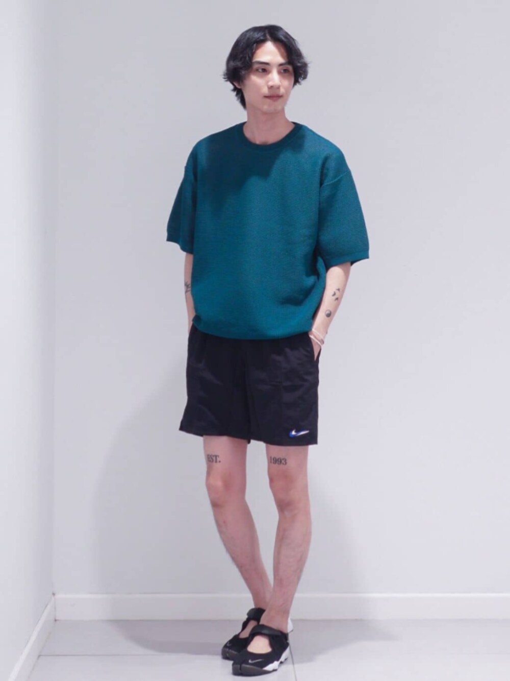 【EDIFICE】 ドライメッシュ リラックスフィット ニットTシャツ ---------------------------------------------------------- Instagram ⇒ a.a.edy ---------------------------------------------------------- リラックス感のある真夏をイメージしたカジュアルスタイル。 ニット以外はモノトーンでまとめて大人っぽく。 ---------------------------------------------------------- 年齢:30代前半 身長:182センチ 体型:細身 普段サイズ:L 着用サイズ:L ---------------------------------------------------------- サイズ感:身長182cm細身の自分が、Lサイズで程良くゆとりを持って着用できるサイズ感。 素材感:ドライタッチで細かいメッシュ調の生地。軽く、清涼感があります。 着心地:通気性が良く、暑い日も着やすいです。