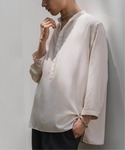 30代前半 / 身長:175センチ / 体型:痩せ型 / 普段サイズ:M 比翼仕立ての前立てのミニマルな印象が特徴のプルオーバータイプのバンドカラーシャツ。 8分の袖丈、タック入りの袖口でミニマルかつエレガントな印象を与えます。 程よいゆとりのあるテーパードパンツと合わせて、大人のリラックススタイルを意識しました。 ■ドレーピー 8分袖 バンドカラープルオーバーシャツ 着用サイズ:L ---------------------------------------------------------- サイズ感:程よくゆとりのあるサイズ感 素材感:しなやかな風合いと程よいドレープ性、落ち着いた光沢感が特徴 着心地:薄いながらも透けずらく、軽やかなシルエット ---------------------------------------------------------- ■ドレーピー ツイル バルーンパンツ 着用サイズ:L ---------------------------------------------------------- サイズ感:ゆとりのあるリラックスフィット 素材感:サラリとした質感にストレッチ性のある素材 着心地:着心地が軽く、ゆったりとしたシルエットなので快適です ----------------------------------------------------------