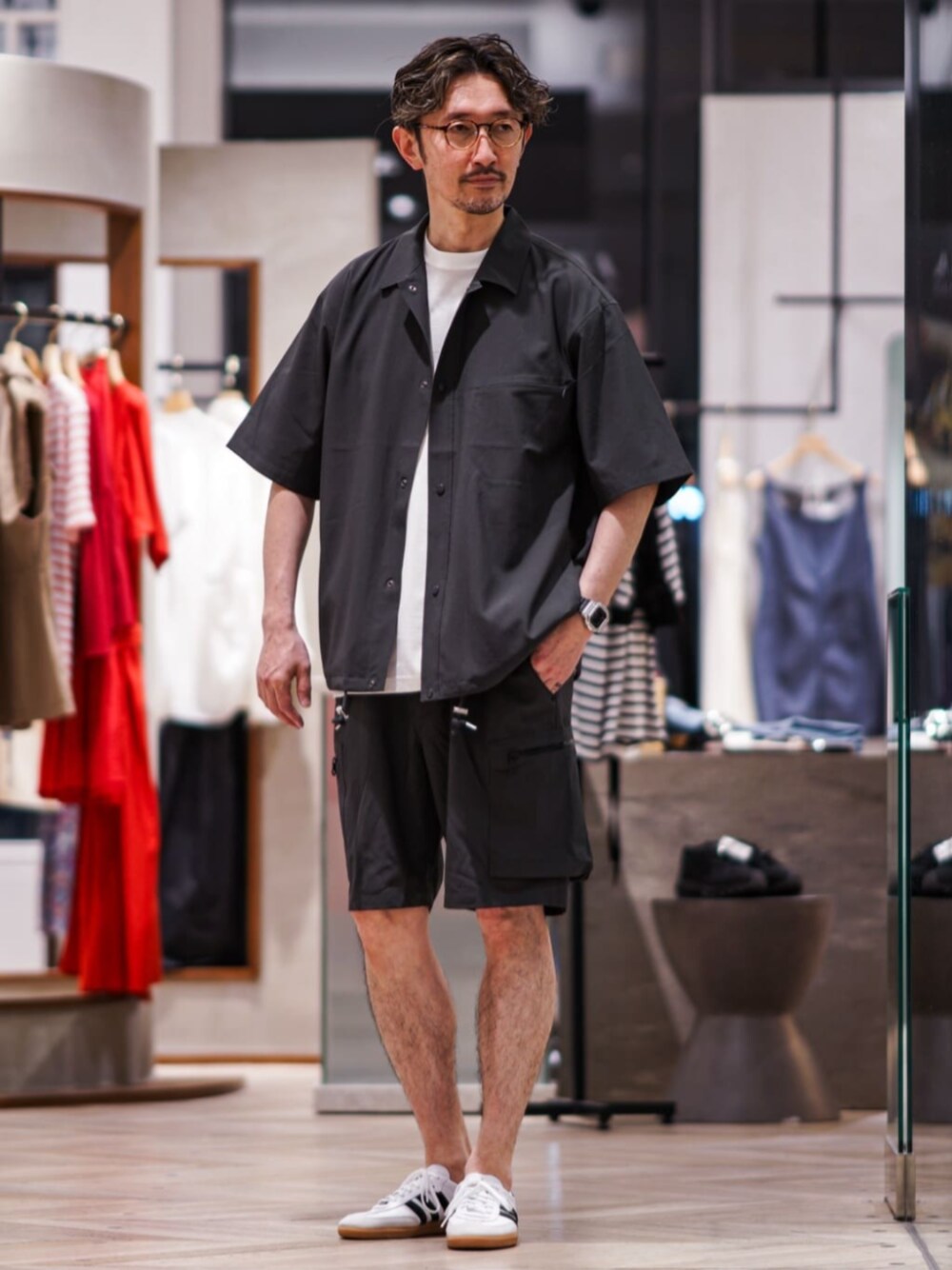 テックエアー ウーブン コーチシャツ 3つの機能的なポケットに、裾を絞って色々な着方を楽しめる、前開きできるシャツタイプなので、様々なシーンでご着用いただけます。 身長:183センチ/普段サイズ:XL/着用サイズ:L 体型:がっちり体型 サイズ感:Lサイズでジャストサイズ 素材感:ドライな質感でストレッチ性のある素材 着心地:軽い着心地で通気性も感じる