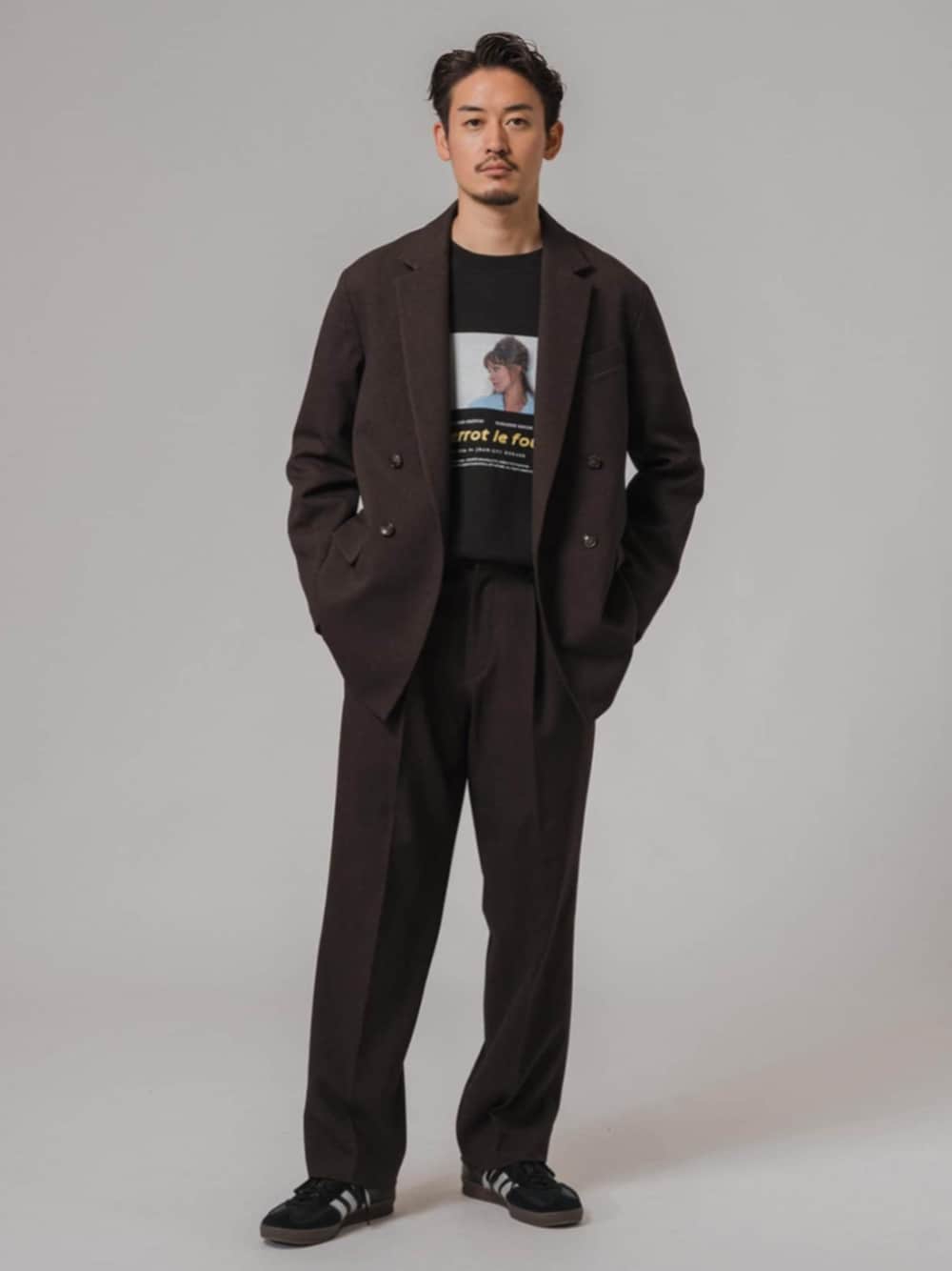 30代前半 / 身長:177センチ / 体型:標準 / 普段サイズ:L 2024年AW、エディフィスが新たにカジュアル向けの機能ウェアを展開する「EXTRETCH FUNCTION」シリーズよりセットアップが登場! インナーにプリントSWを合わせることで、ラフでカジュアルにまとめました。 ■EC限定 ”EXTRETCH FUNCTION” ダブルブレストジャケット 着用サイズ:L ---------------------------------------------------------- サイズ感:全体的にゆったり目のシルエット 素材感 :ストレッチ性、ウォシャブル、防シワ性の機能性あり 着心地 :ウールライクなメランジ感のある見え方と肌触り ---------------------------------------------------------- ■EC限定 ”EXTRETCH FUNCTION” スラックス 着用サイズ:L ---------------------------------------------------------- サイズ感:程よくゆとりを出しながら、裾に向け少しだけテーパードシルエット 素材感:ストレッチ性、ウォシャブル、防シワ性の機能性あり 着心地:ウールライクなメランジ感のある見え方と肌触り ---------------------------------------------------------- ■Jean-Luc Godard ウォッシュ加工 プリントスウェット 着用サイズ:L ---------------------------------------------------------- サイズ感:程よくゆとりがあるシルエット 素材感:綿100%のスウェット素材 着心地:ゆったりとしたシルエットなので着やすいです ----------------------------------------------------------