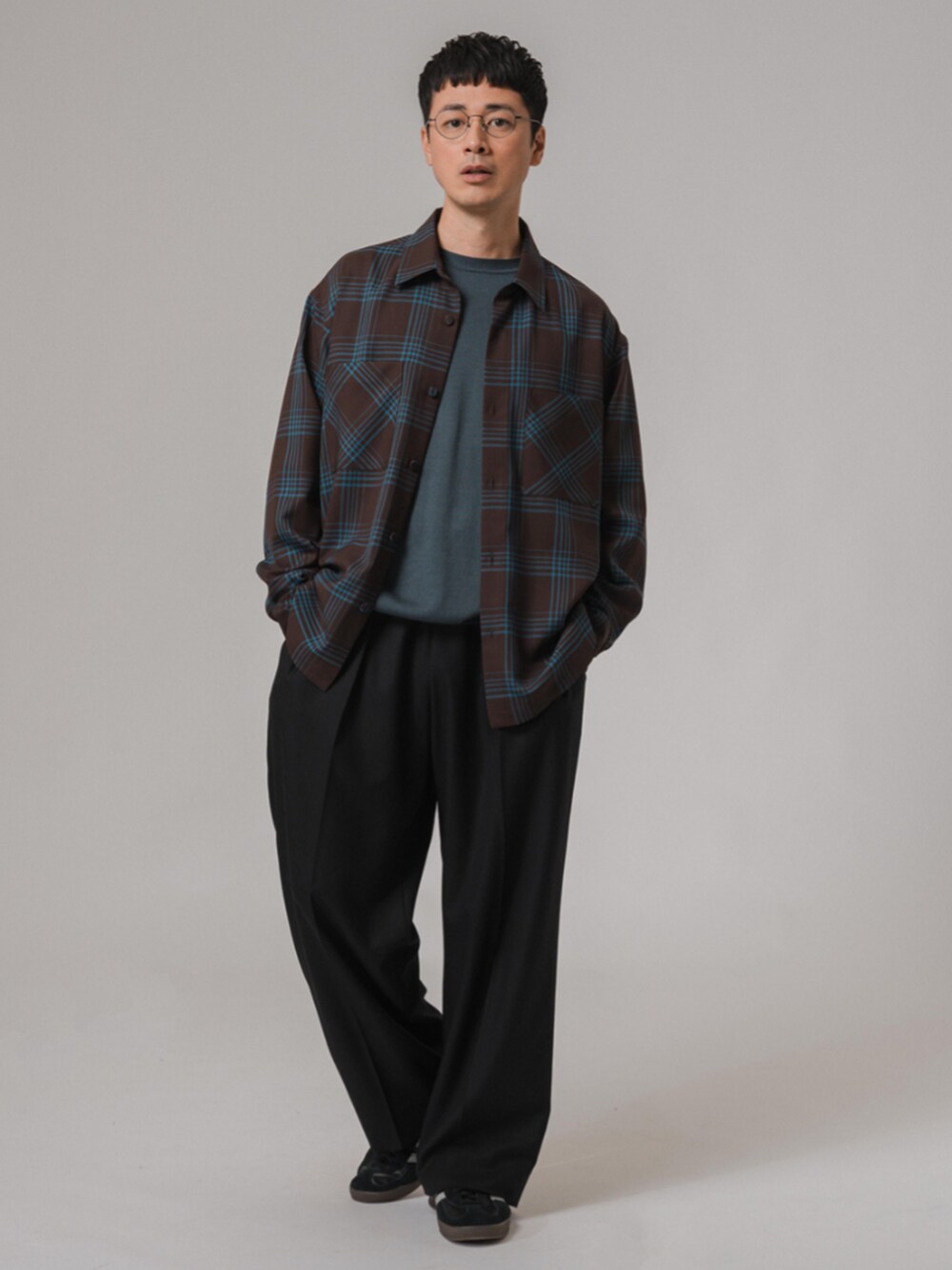 30代後半/身長:176センチ / 標準型 / 普段サイズ:L 軽量で洗えるので、今の時期の羽織としておすすめです。 落ち着いた色合いのチェック柄なので、程よく華やかさをプラスできます。 ■ウォッシャブル ツイル CPO シャツ 着用サイズ:L ---------------------------------------------------------- サイズ感:ゆったり羽織れます。 素材感 :シワになりづらく、クリアで程よい落ち感のある風合いの素材。 着心地 :まだ汗ばむ季節の軽羽織としても着れそう ---------------------------------------------------------- ■14ゲージ ウール クルーネックニット 着用サイズ:L ---------------------------------------------------------- サイズ感:少しゆとりのあるジャスト目なサイズ感 素材感:滑らかな質感としなやかさのあるニット素材 着心地:ニット特有のチクチクとした感じは薄く、着やすいです ---------------------------------------------------------- ■2WAYストレッチ ウールミックス ウルトラワイドイージーパンツ 着用サイズ:L ---------------------------------------------------------- サイズ感:ヒップまわりはややすっきりとしてます 素材感 :クリアな表面感となめらかな肌触りが特徴の2WAYストレッチ 着心地 :ワイドシルエットでありながらも品良く着れます ----------------------------------------------------------