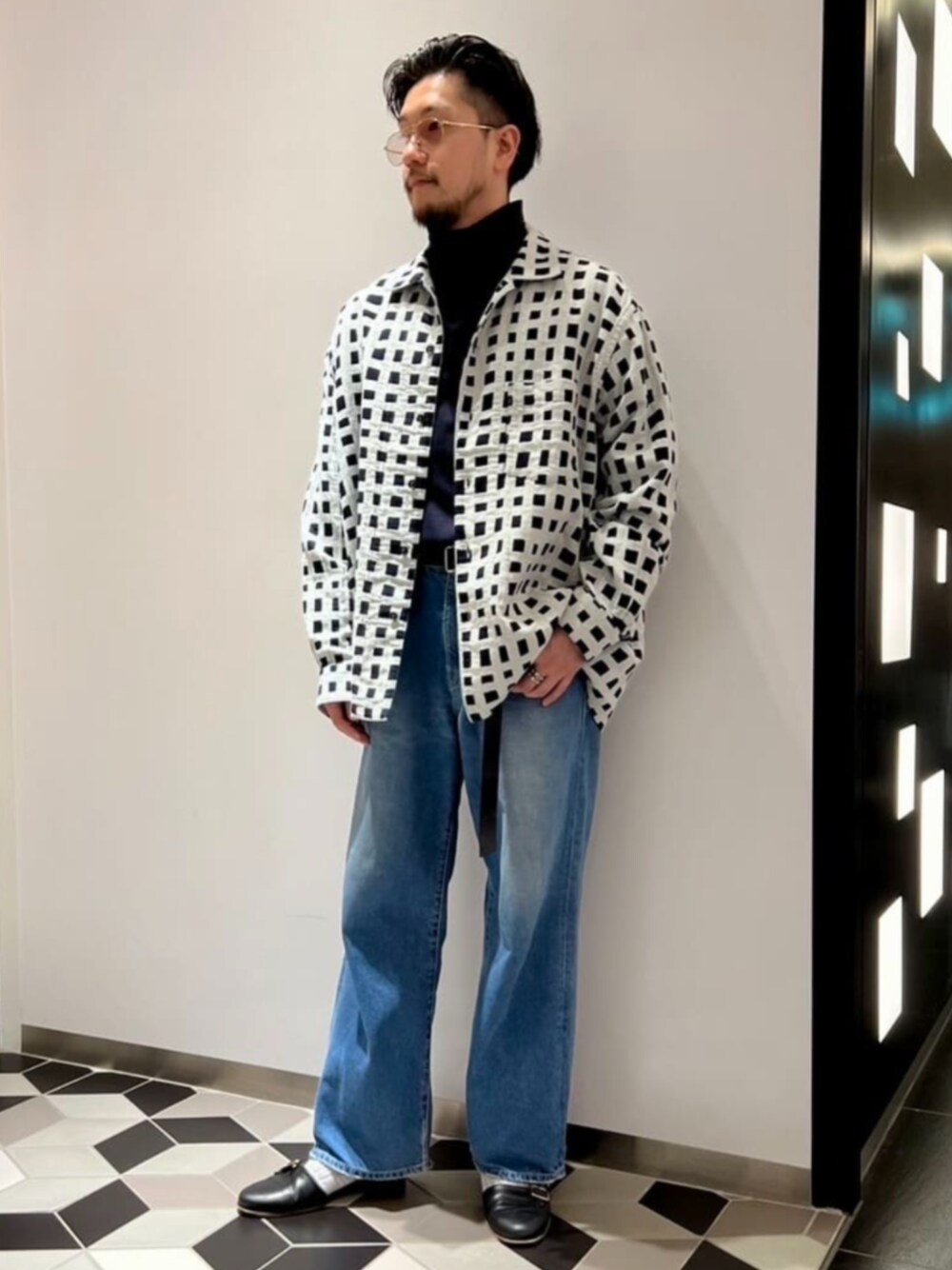 tatamass INDIGO Random Cheack SH オーバーシャツを羽織として使いました。 首のあるインナーを使用して季節感を。 身長体重 : 170cm/61kg 普通体型 普段サイズ : M 着用サイズ : M 年齢 : 30代中盤 サイズ感 : ゆとりのあるサイズ感 素材感 : 程良い厚みのコットン生地。春も着られそう。 着心地 : サラッとしていて着やすい。