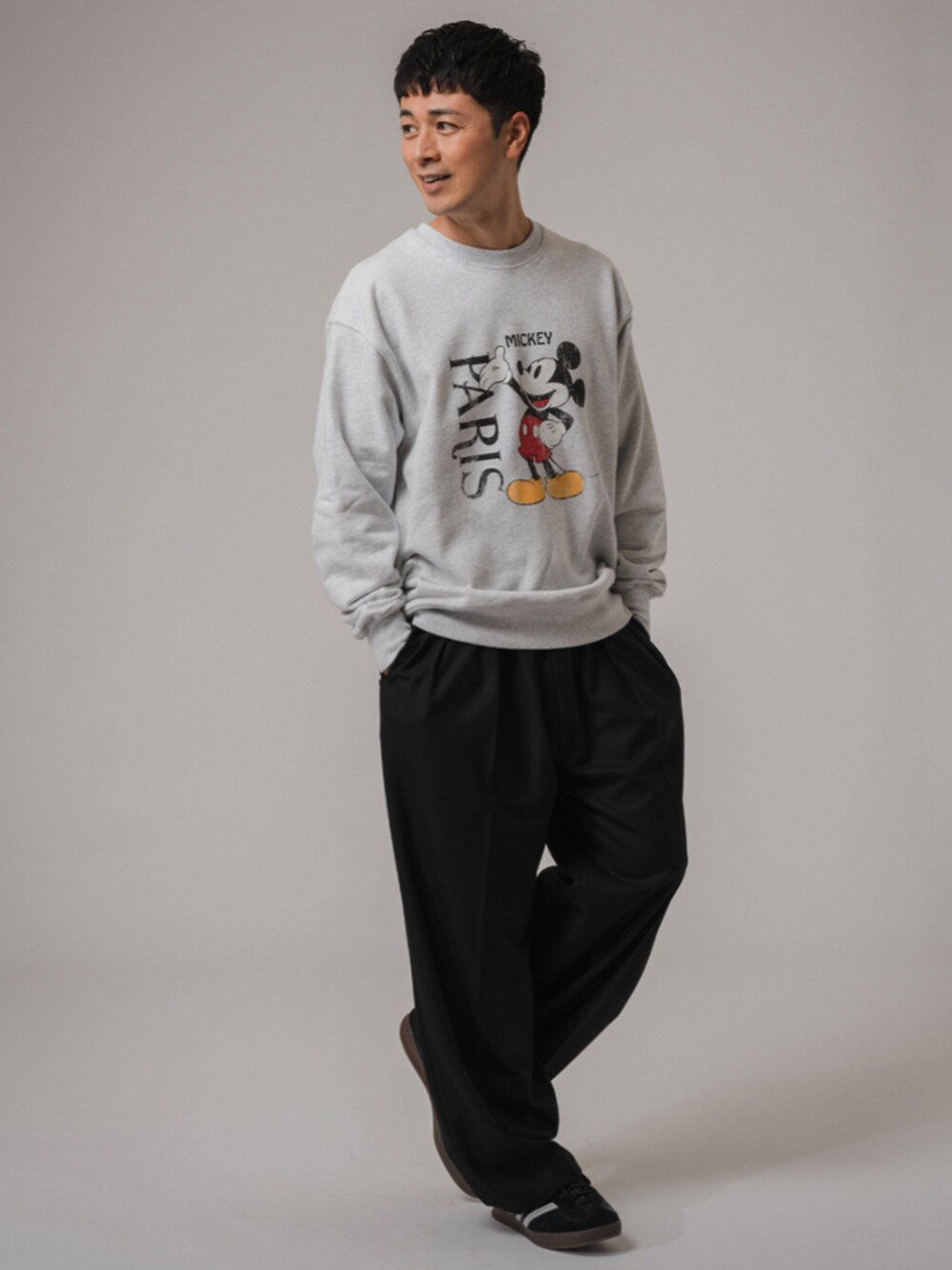 30代後半/身長:176センチ / 標準型 / 普段サイズ:L ミッキーのスウェットは、EDIFICEらしいPARISの文字が大人の男性でも、子供っぽくなり過ぎずに着用できます。 ヘビーウェイトのオーバーサイズでメンズらしさもあり、スタイリングのアクセントにもなってくれます。 ■ヴィンテージウォッシュ スウェット(MICKEY MOUSE) 着用サイズ:L ---------------------------------------------------------- サイズ感:ゆったりとしたサイズ感 素材感 :ボリュームのある素材感 着心地 :ヘヴィーウェイトで安心感があります ---------------------------------------------------------- ■2WAYストレッチ ウールミックス ウルトラワイドイージーパンツ 着用サイズ:L ---------------------------------------------------------- サイズ感:ヒップまわりはややすっきりとしてます 素材感 :クリアな表面感となめらかな肌触りが特徴の2WAYストレッチ 着心地 :ワイドシルエットでありながらも品良く着れます ----------------------------------------------------------