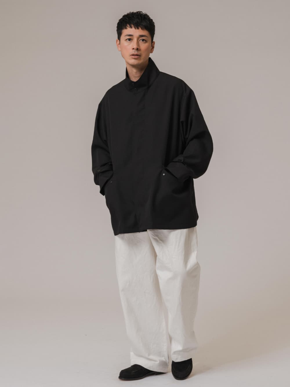 30代後半/身長:176センチ / 標準型 / 普段サイズ:L ポリエステルとウールビスコスのギャバを使用したミリタリーモチーフのブルゾン。 シンプルな見た目ゆえにシルエットが映えるので、コーディネートのメインアイテムとしても存在感を発揮っしてくれます。 ■【CONFFECT EDIFICE】TW GABA STAND BLOUSON 着用サイズ:L ---------------------------------------------------------- サイズ感:ゆったりとして、楽に羽織れます 素材感 :張り感のある素材 着心地 :裏地があるので、着やすいです ---------------------------------------------------------- ■【CONFFECT EDIFICE】DENIM WIDE PANTS 着用サイズ:L ---------------------------------------------------------- サイズ感:ワイドなので、全体的にゆったりしてます 素材感 :ヘビーなデニム素材です 着心地 :ゆるっとしたシルエットで今っぽいです ----------------------------------------------------------