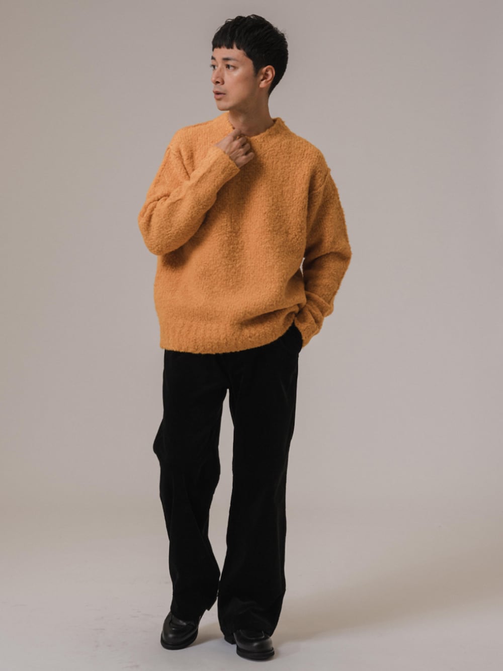 30代後半/身長:176センチ / 標準型 / 普段サイズ:L ゆったりとしたシルエットのワイドVネックセーター。 首が詰まったVネックなので、首の空きが気にならず冬でも温かいです。 明るめのイエローが冬のスタイリングを華やかにしてくれます。 ■LA BOUCLE (ラブークル) ALPAFUR PILE JQ V/N ニット 着用サイズ:3 ---------------------------------------------------------- サイズ感:ゆったりとしたシルエット。 素材感 :パイルのようなふわふわの素材感。 着心地 :軽くて温かい着心地。 ---------------------------------------------------------- ■Barbour(バブアー) SL SPEY/スペイ JACKET WAX MWX1212 着用サイズ:L ---------------------------------------------------------- サイズ感:ゆったりめのシルエット。 素材感 :ワックスドコットン。 着心地 :防水性があるので、全天候向きで動きやすいです。 ---------------------------------------------------------- ■CORDUROY NOUVEAU PANTALON 着用サイズ:L ---------------------------------------------------------- サイズ感:ウエストからヒップにかけてはジャストサイズ、裾にかけてはストレート。 素材感 :小気味いい細みのコーデュロイ素材。 着心地 :ストンと落ちた大人なシルエットで上品見えします。 ----------------------------------------------------------