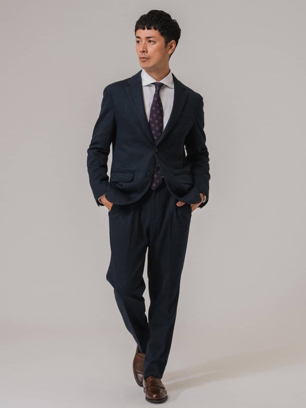 30代後半/身長:176センチ / 標準型 / 普段サイズ:L コットン/ウール ジャージーのセットアップをシャツとネクタイと合わせてビジネススタイルにしてみました。 ■コットン/ウール ジャージー 2ボタン ジャケット【セットアップ着用可】 着用サイズ:L ---------------------------------------------------------- サイズ感:袖も程よいゆとりがあり窮屈感がありません。 素材感 :ストレッチ性のある素材。 着心地 :柔らかく、動きやすくて着心地◎ ---------------------------------------------------------- ■コットン/ウール ジャージー イージースラックス【セットアップ着用可】 着用サイズ:L ---------------------------------------------------------- サイズ感:細身のテーパードシルエット。 素材感 :ストレッチ性のある素材。 着心地 :柔らかく、動きやすくて着心地◎ ----------------------------------------------------------