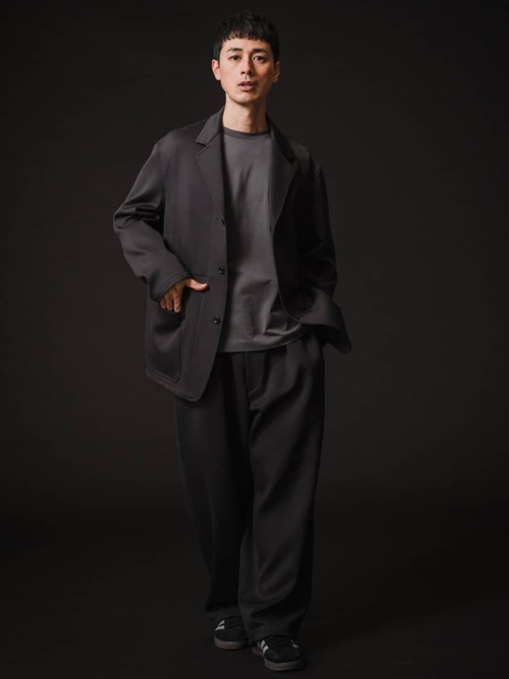 30代後半/身長:176センチ / 標準型 / 普段サイズ:L ダンボール素材のセットアップ。 全体的に立体感とボリュームがあり、シンプルながらも存在感は抜群。 グレーのワントーンで纏めることで、都会的な洗練された大人な印象になります。 ■T/E(ティーイー) フレンチワークジャケット 着用サイズ:L ---------------------------------------------------------- サイズ感:ゆったりとして体型を拾わないサイズ感 素材感 :ボリューム感のあるダンボールニット素材 着心地 :軽量でストレッチも効いて着やすい ---------------------------------------------------------- ■T/E(ティーイー) M52 トラウザー 着用サイズ:L ---------------------------------------------------------- サイズ感:ワイドシルエットでゆったりとしたサイズ感 素材感 :ボリューム感のあるダンボールニット素材 着心地 :軽量でストレッチも効いて着やすい ----------------------------------------------------------