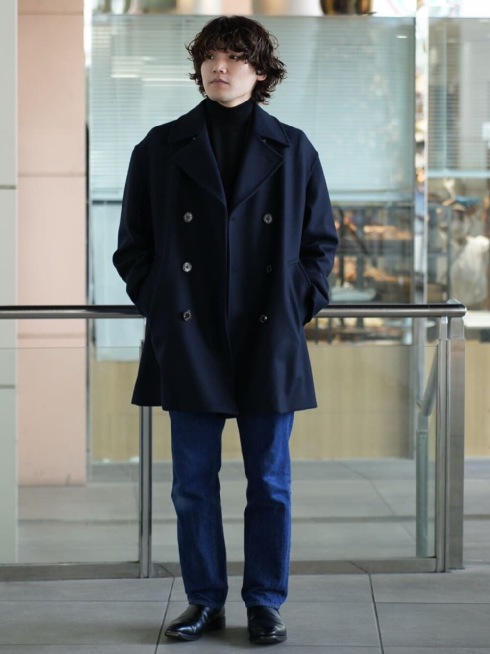 MACKINTOSH(マッキントッシュ) HUMBIE/ハンビー PEA COAT GTS SL GM-1162F トップスにボリュームを持たせたコーディネート。 身長/169cm 体型/やせ型/普段サイズ/M 着用サイズ:36 サイズ感:ドロップショルダーのモダンなフィッティング 素材感:程良い厚みのウールメルトン生地