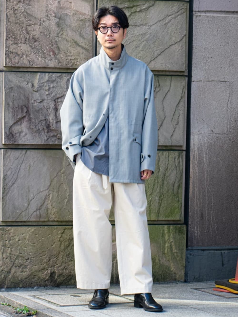 【CONFFECT EDIFICE】TW GABA STAND BLOUSON Instagram ⇒ miutake___ 春らしい色味を意識したコーデ。 トップスはグレーのグラデーションで、足元のブーツが浮かない様に意識してます。 身長 : 178cm / 体型 : 細身 / 普段サイズ : M or L / 着用サイズ : L / 年齢 : 30代 サイズ感 : ルーズなサイズ感。 素材感 : 軽めで滑らかなウール混の素材。 着心地 : ライトな素材で大きめなので楽チンです。