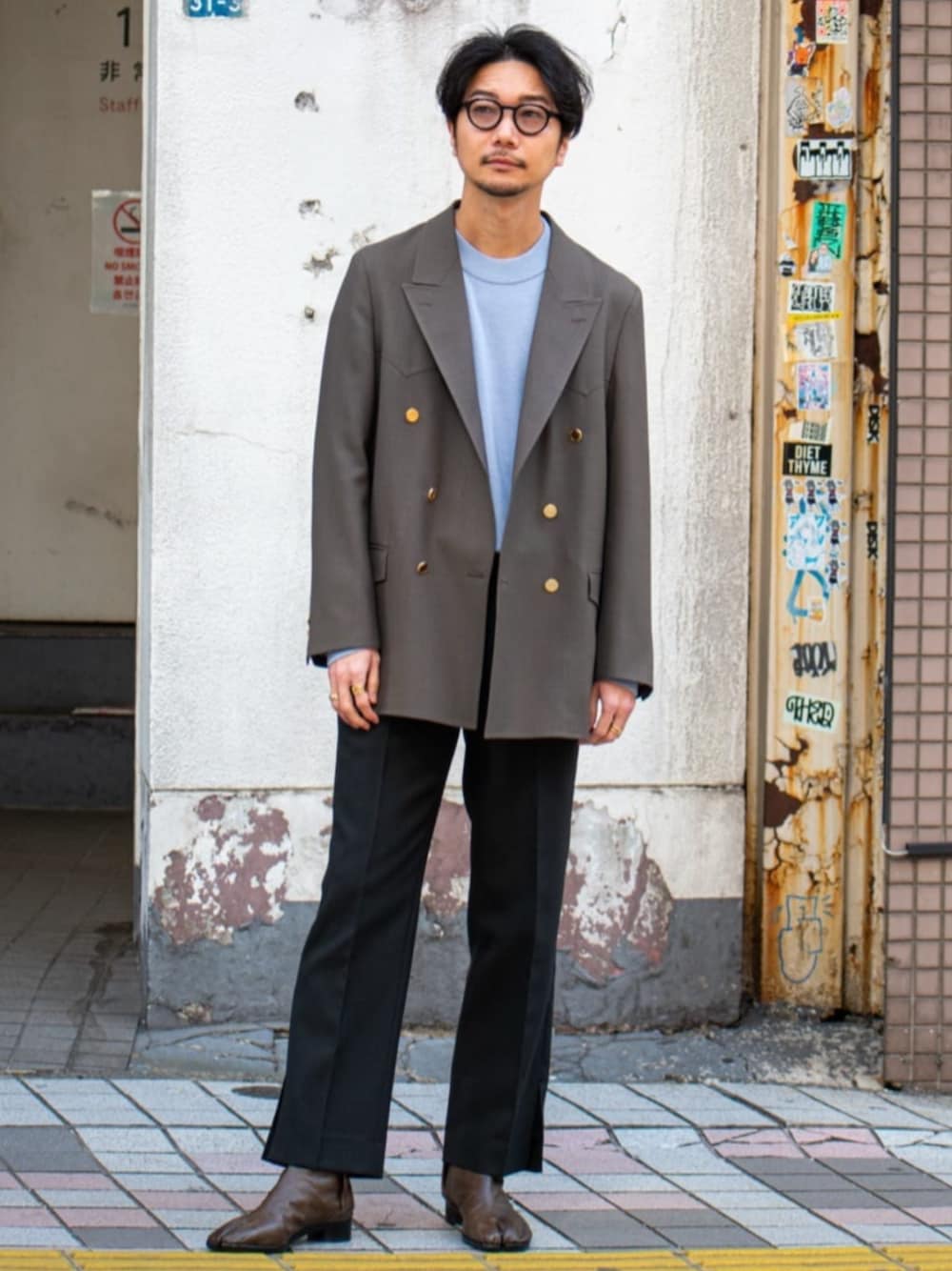 COUTURE D’ADAM(クチュール ド アダム) Dixie JK / Vintage Tropical Instagram ⇒ miutake___ スモーキーな色味でまとめたジャケットスタイル。 ニットの色味を同系色の色味でなく、敢えてブルーにする事で引き立ててます。 身長 : 178cm / 体型 : 細身 / 普段サイズ : M or L / 着用サイズ : 42 / 年齢 : 30代 サイズ感 : 細身ではあるがリラックス感のあるサイズ。 素材感 : トロピカルウールで夏場までお召しいただけます。 着心地 : 軽くて薄いウール素材。また可動域も考えられており着やすいです。