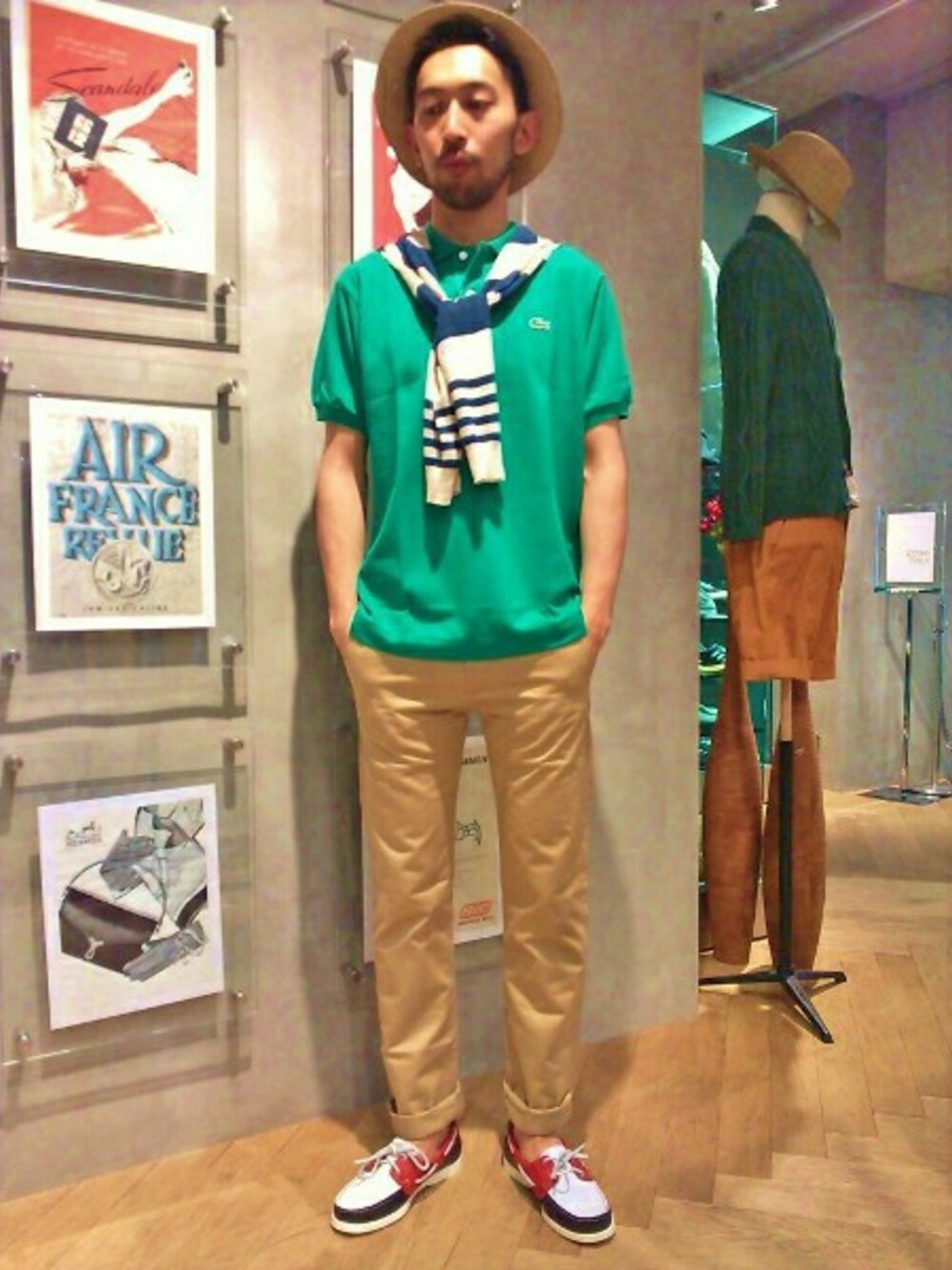 全ての工程をフランスの工場で行った、通称フララコ。こちらは差し色に使えるグリーンを上品にまとめたコーディネートです。