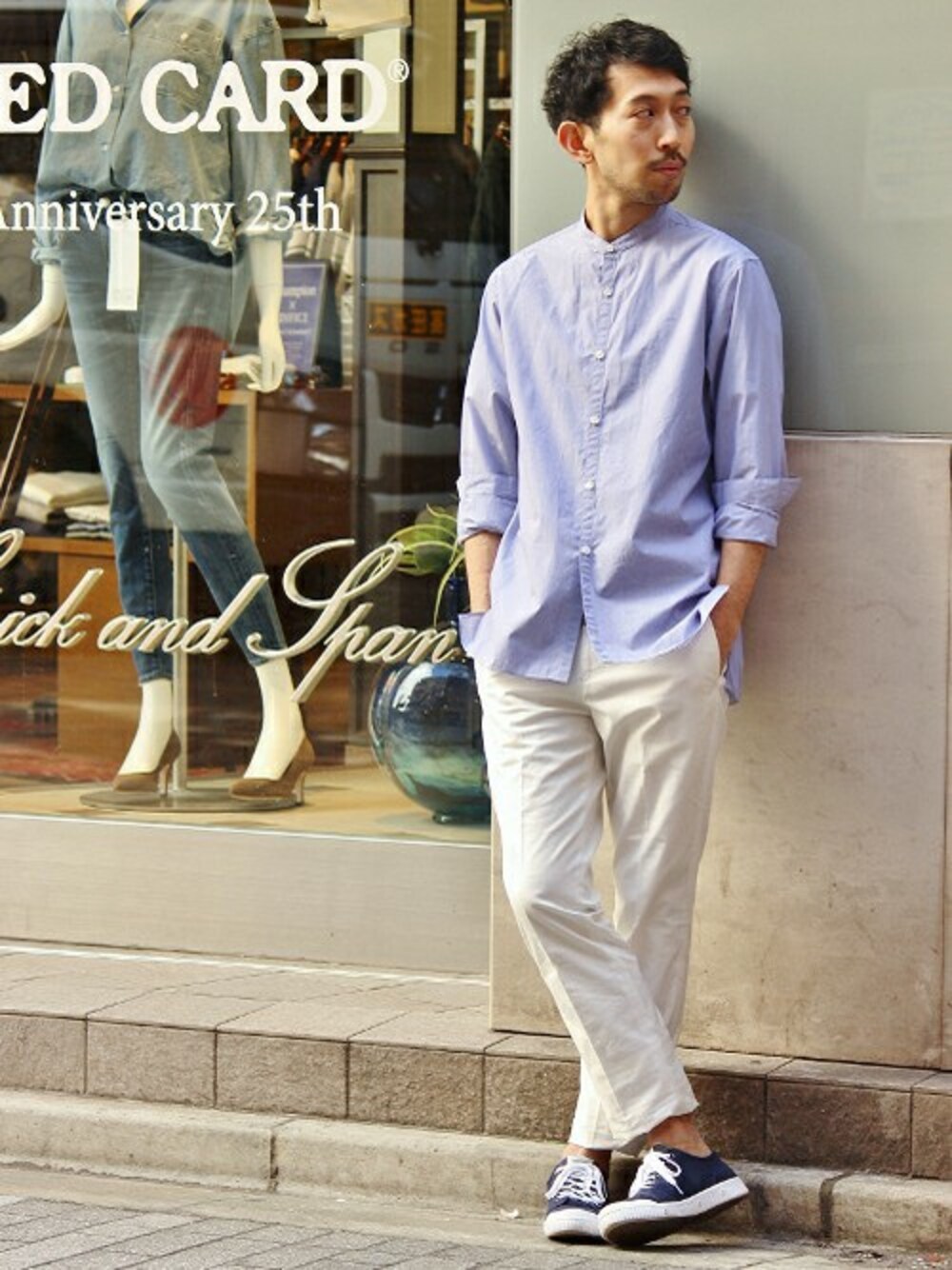 EDIFICE OFFICIAL(PULP 417 EDIFICE)のシャツ/ブラウス「◇トルファンコットンハケメ バンドカラーL/S」を使ったコーディネート