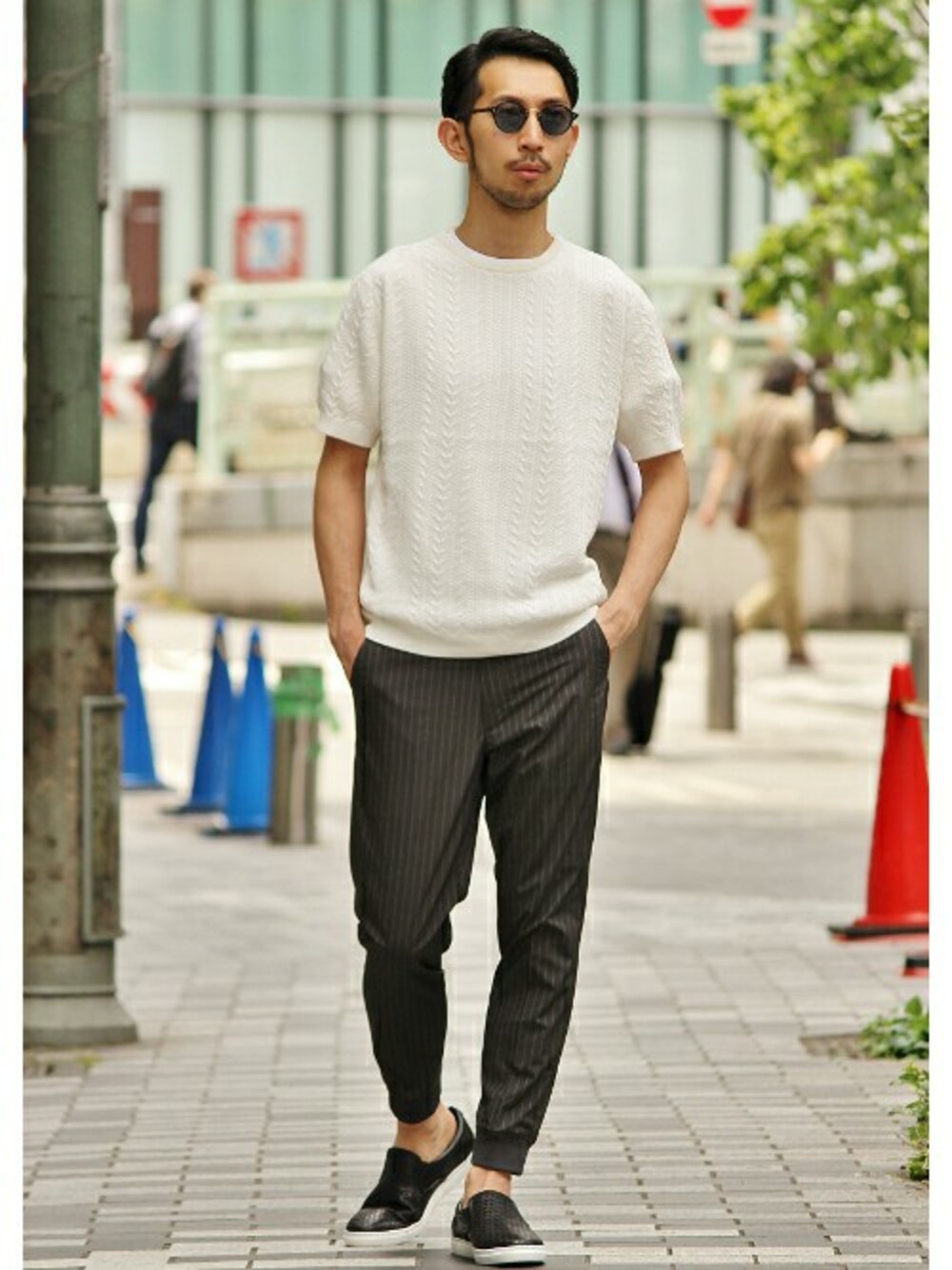 EDIFICE OFFICIAL(PULP 417 EDIFICE)のニット/セーター「◇COTTON ケーブル半袖ニット」を使ったコーディネート