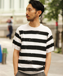 EDIFICE OFFICIAL(PULP 417 EDIFICE)のニット/セーター「◇PRINTボーダー ショートスリーブ ニット」を使ったコーディネート