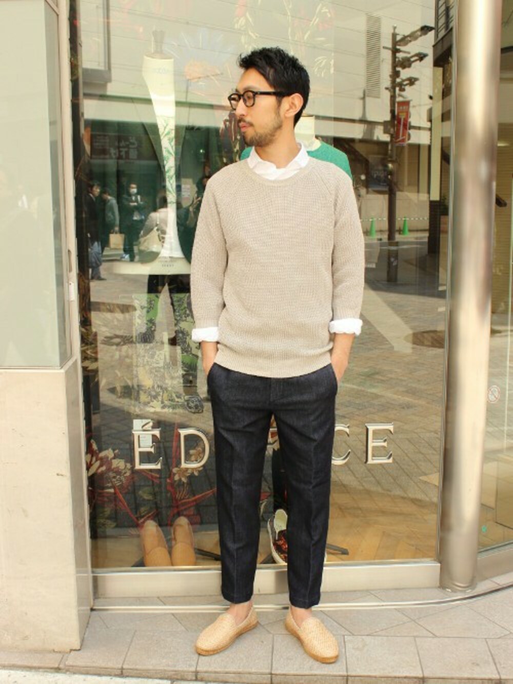 EDIFICE OFFICIAL(PULP 417 EDIFICE)のニット/セーター「◇【GAINER 5月号掲載】和紙 コットンリネン クルーネック 7分ニット」を使ったコーディネート