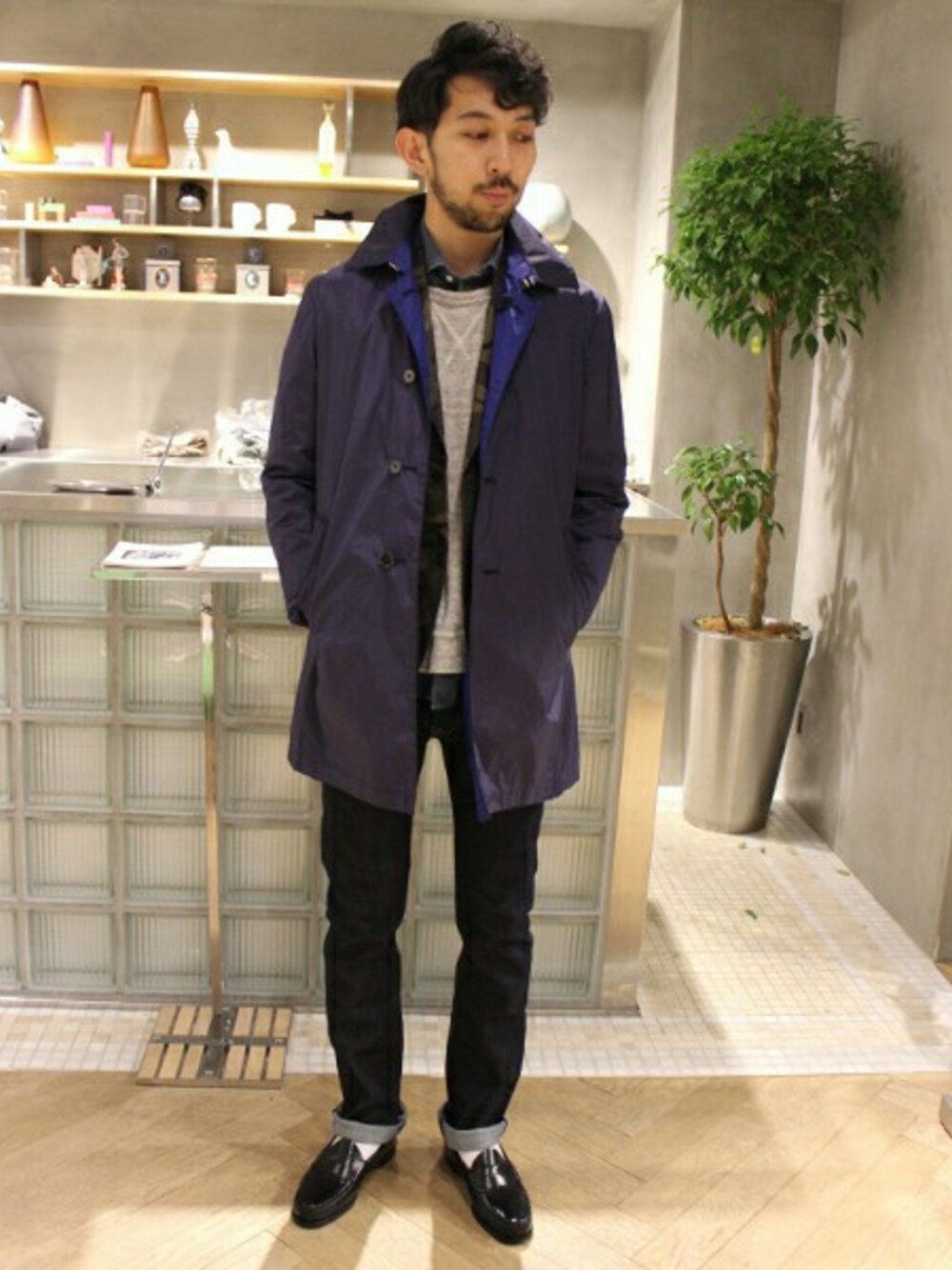 一着で2通りのコーディネイトが可能な軽いウェイトにアレンジした、コンパクトなステンカラーのコート。ON・OFFシーンで使い分けができるメリハリのあるカラーがポイントです。