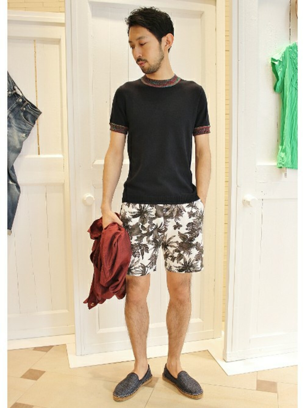 EDIFICE OFFICIAL(PULP 417 EDIFICE)のTシャツ/カットソー「◇SIDESLOPE×EDIFICEカスリリブS/S C/Nニット 」を使ったコーディネート