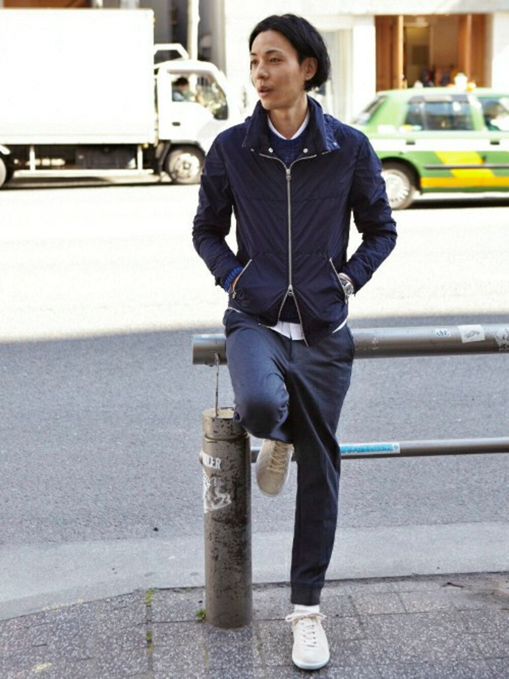 EDIFICE TOKYO店スタッフ6のブルゾン「◇ハイカウントタフタHOODブルゾン」を使ったコーディネート