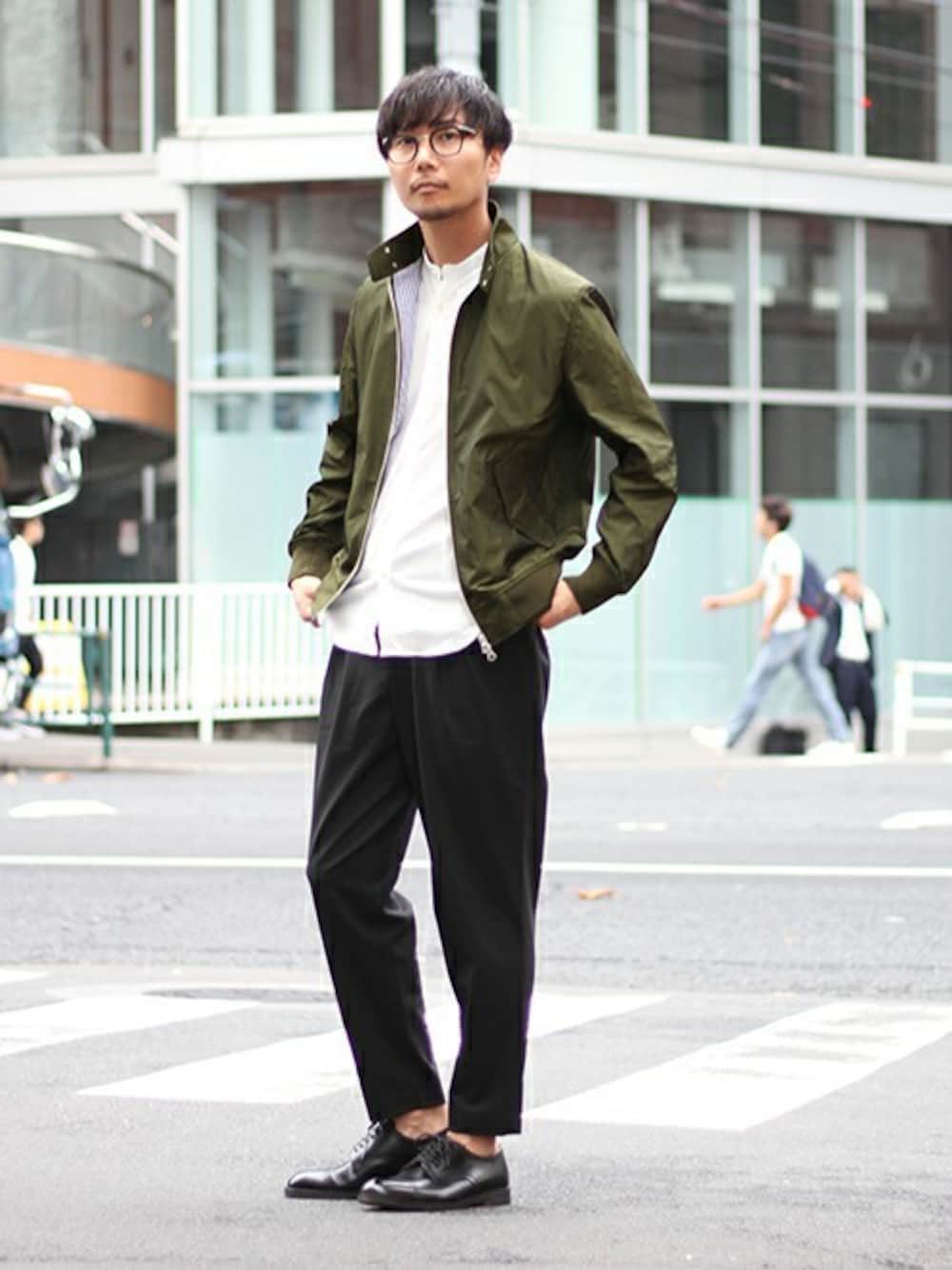 光沢のある生地感が特徴のG9型ブルゾンは、現代的に細身の仕様となっており、スタイリングをスッキリ見せることができます。カーキ×ブラックのカラーで合わせれば都会的なミリタリースタイルに。
