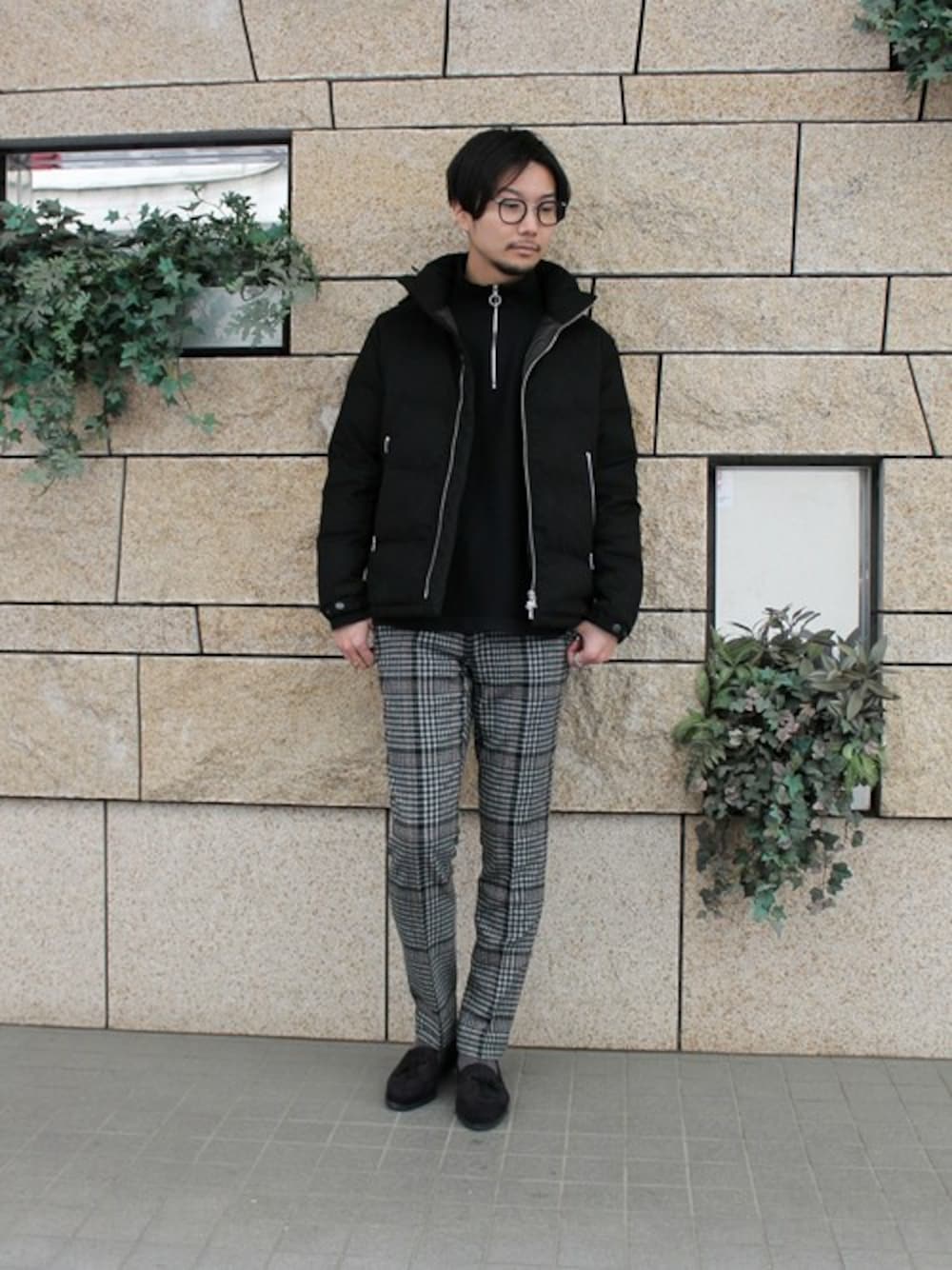 旬なアイテム”ジップニット”のダウンコーデ ジップニットだからこそ、冬の装いもさりげなく楽しめます。
