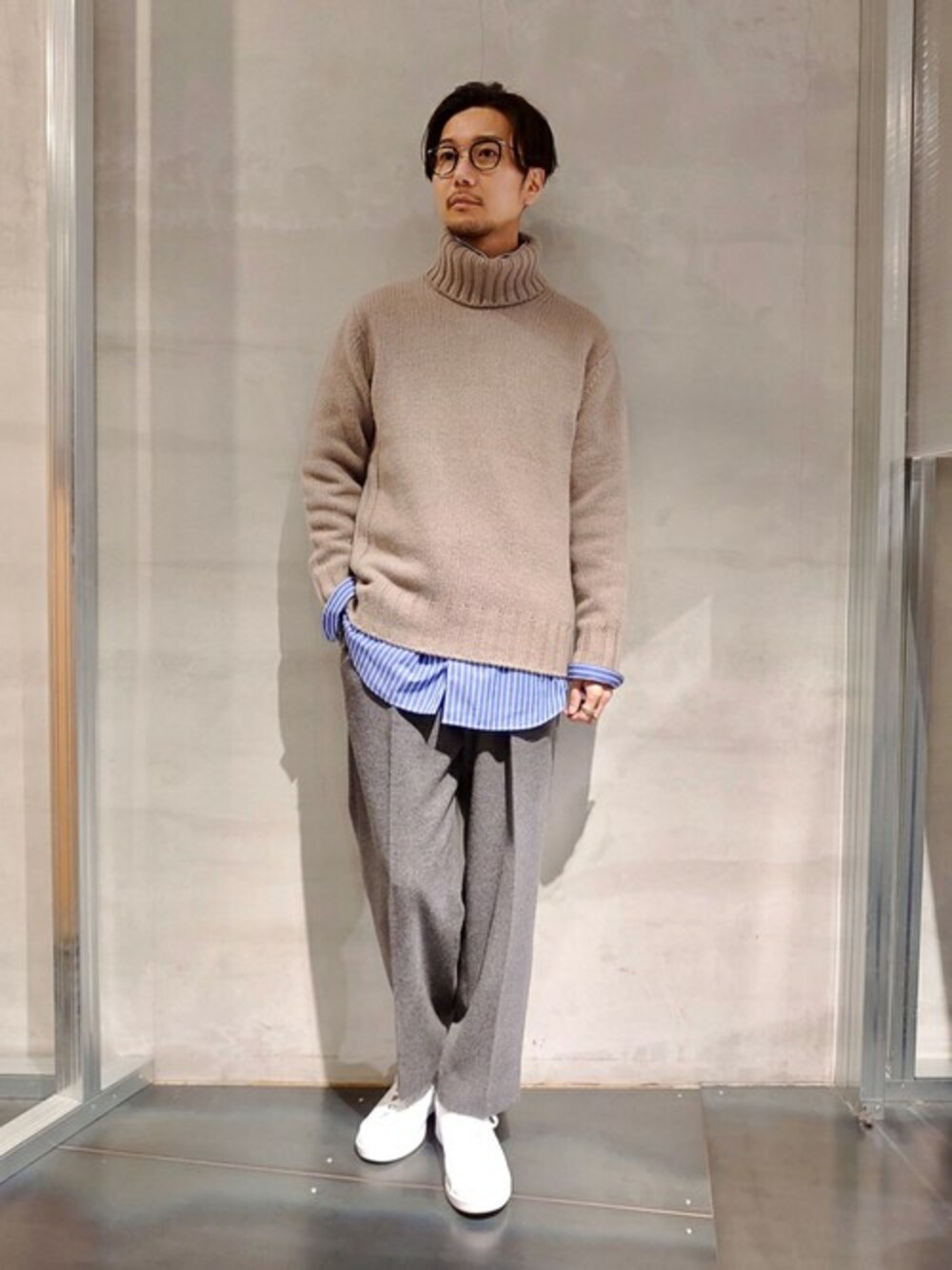 miuraのニット/セーター「3ゲージ カシミアブレンド ボトルネックニット」を使ったコーディネート