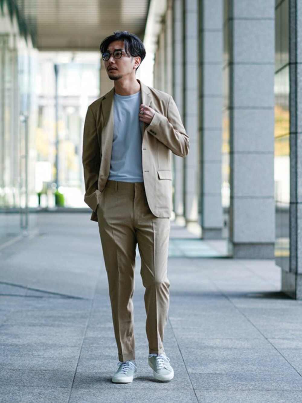 miuraのテーラードジャケット「CLICK ライトメランジトロ 2ボタン ジャケット」を使ったコーディネート