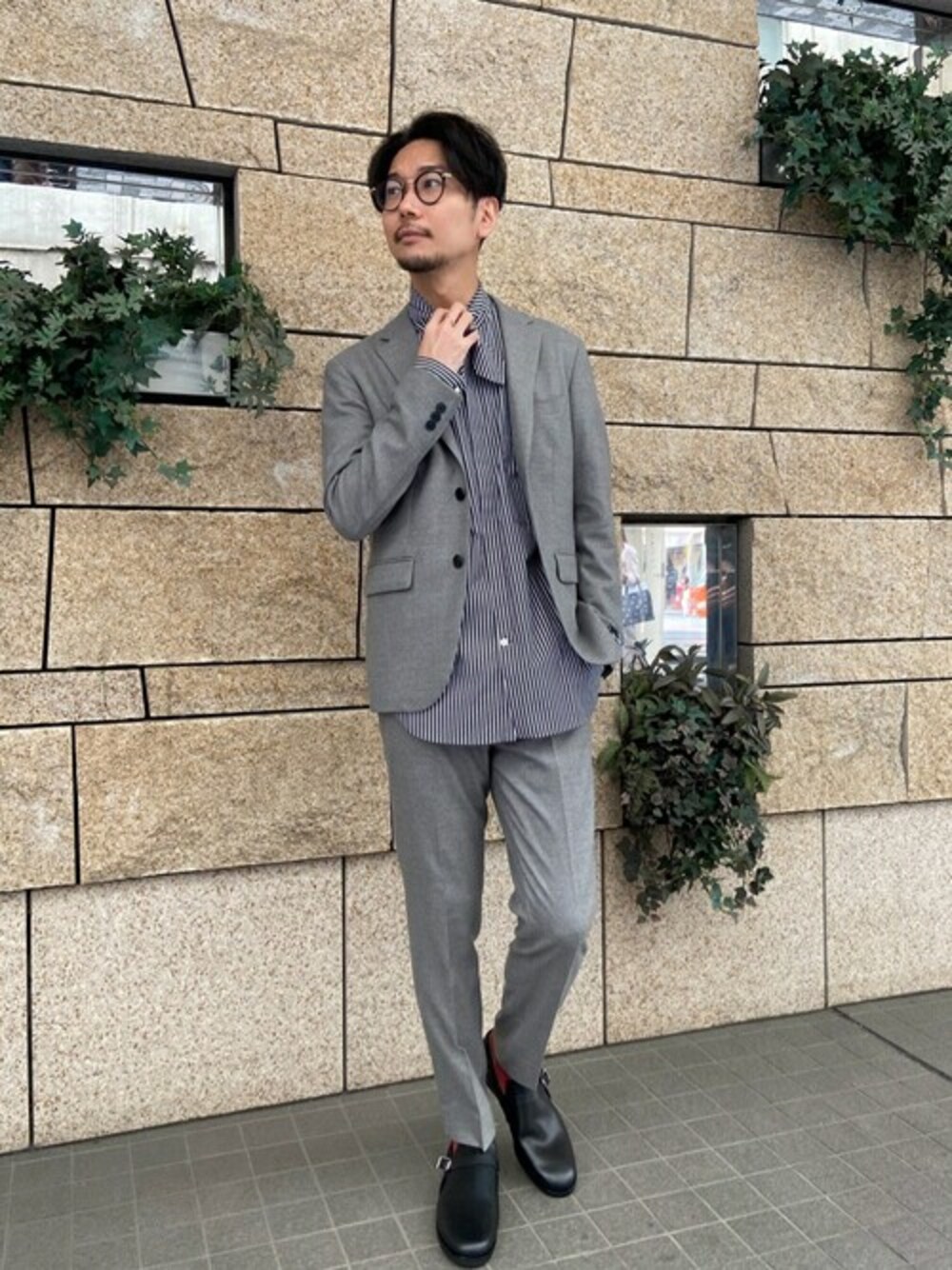 TOPサキソニー 2ボタン テーラードジャケット 【セットアップ着用可能】 《高級感と品位が溢れるテーラードジャケット》 ■デザイン 細身でやや着丈の短めなノッチドラペルの2つ釦のジャケットです。裏の仕様は、背抜き仕立て(観音仕立て)にし、生地のストレッチ性と軽さを活かしています。 ■素材 Super100's原料のウールのストレッチサキソニーを使用。尾州産地(愛知県一宮市をはじめとした国内最大の毛織物産地)でこだわって織り、仕上げられ、原料の持つ上品な艶感としなやかな風合いとが特徴の生地に仕上がっています。 身長 : 178cm / 体型 : 細身 / 普段サイズ : M or L / 着用サイズ : M / 年齢 : 30代 サイズ感 : スッキリとした綺麗なシルエットだか、細過ぎなくバランス良い。 素材感 : 上質に見えるオリジナル生地。 着心地 : 多少のストレッチとゆとりがあるので、着用しやすい。