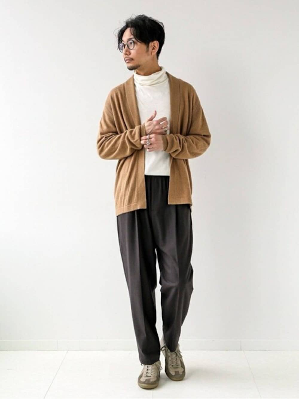miuraのカーディガン/ボレロ「ナチュラル キャメル ショール カーディガン」を使ったコーディネート