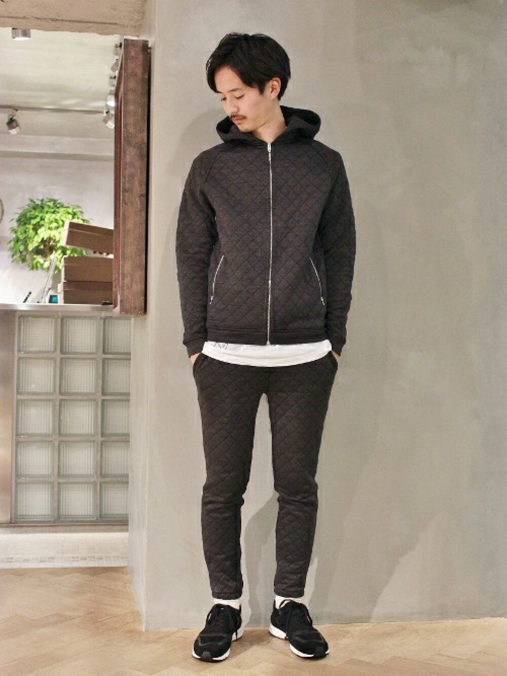 EDIFICE TOKYO店スタッフ3のパーカー「◇ダイヤキルトドルマンパーカー」を使ったコーディネート