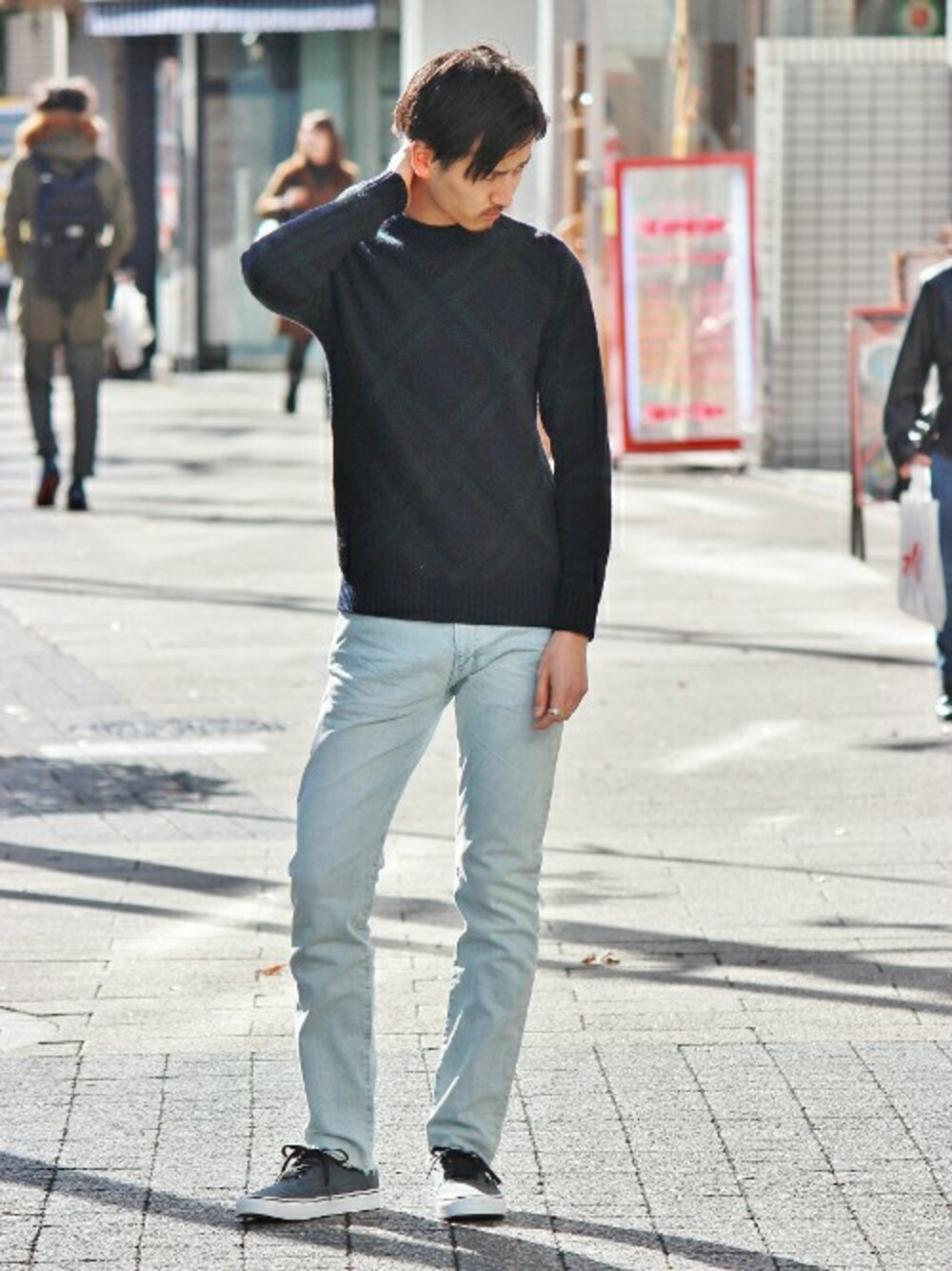 EDIFICE TOKYO店スタッフ3のニット/セーター「◇W/MO JQチェックC/N P/O」を使ったコーディネート
