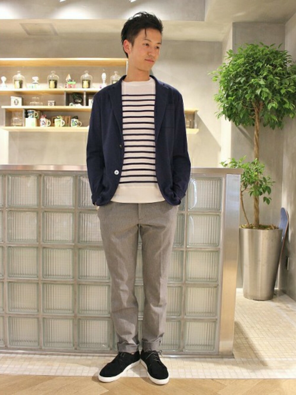 EDIFICE TOKYO店スタッフ3のテーラードジャケット「◇イズミールカノコ カットオフジャケット」を使ったコーディネート