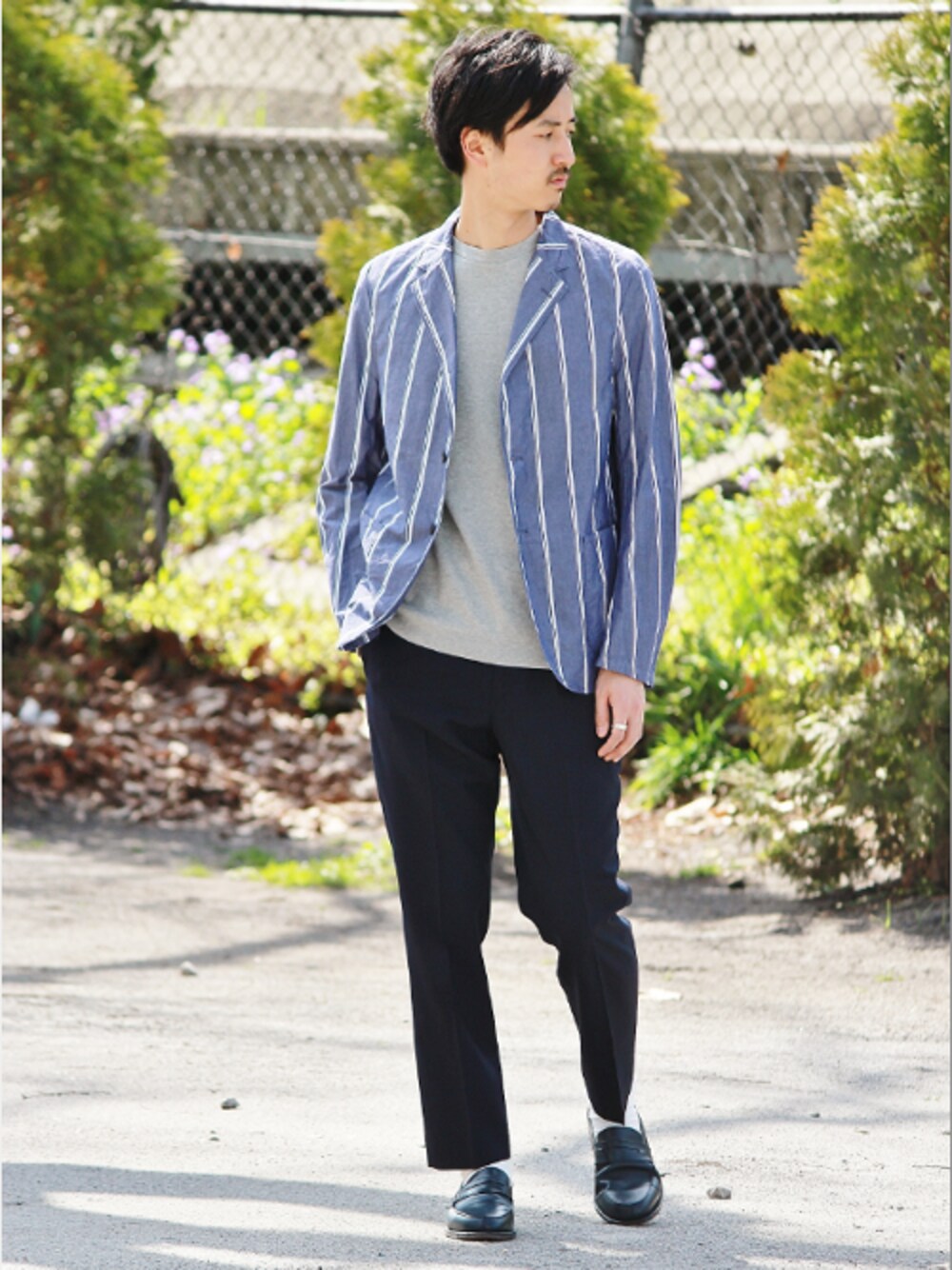 EDIFICE TOKYO店スタッフ3のその他アウター「◇ワイドストライプ シャツカバーオール」を使ったコーディネート