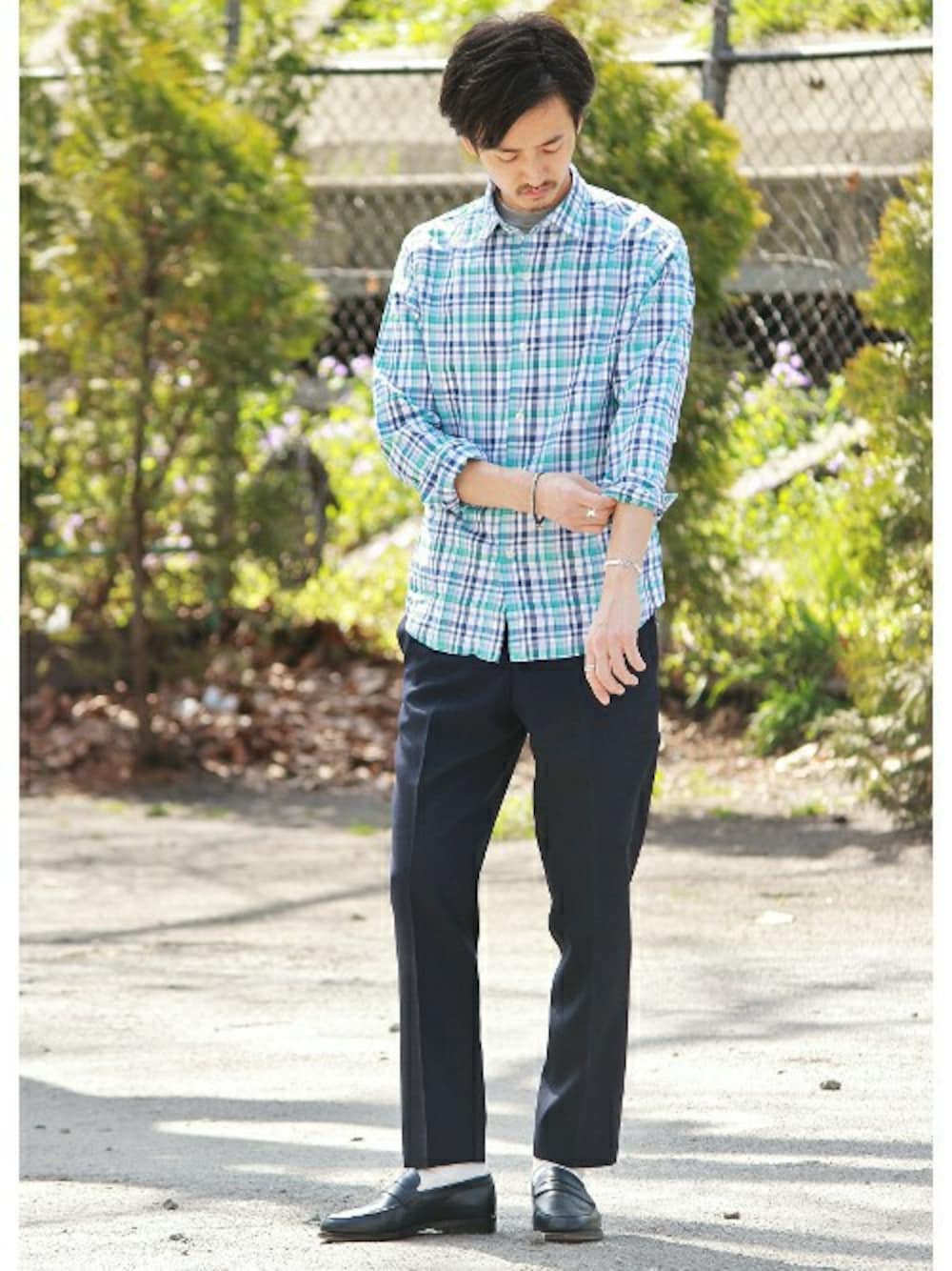 EDIFICE TOKYO店スタッフ3のシャツ/ブラウス「◇MONTI / モンティ : C/LI OXチェック セミワイドカラーシャツ」を使ったコーディネート