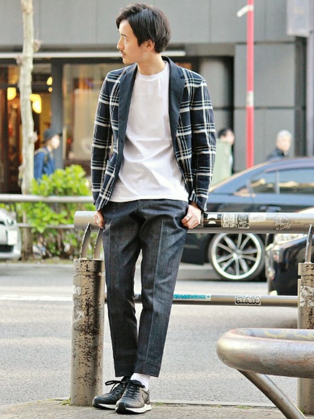 EDIFICE TOKYO店スタッフ3のテーラードジャケット「◇カラミメッシュチェックジャケット」を使ったコーディネート