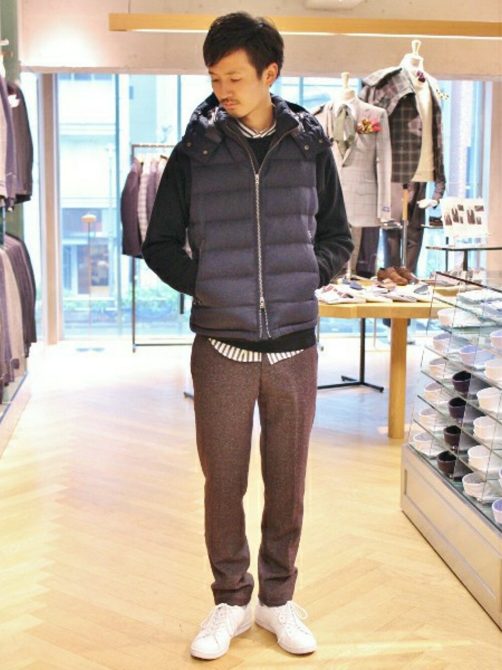 EDIFICE TOKYO店スタッフ3のダウンベスト「◇サキソニーダウンベスト」を使ったコーディネート