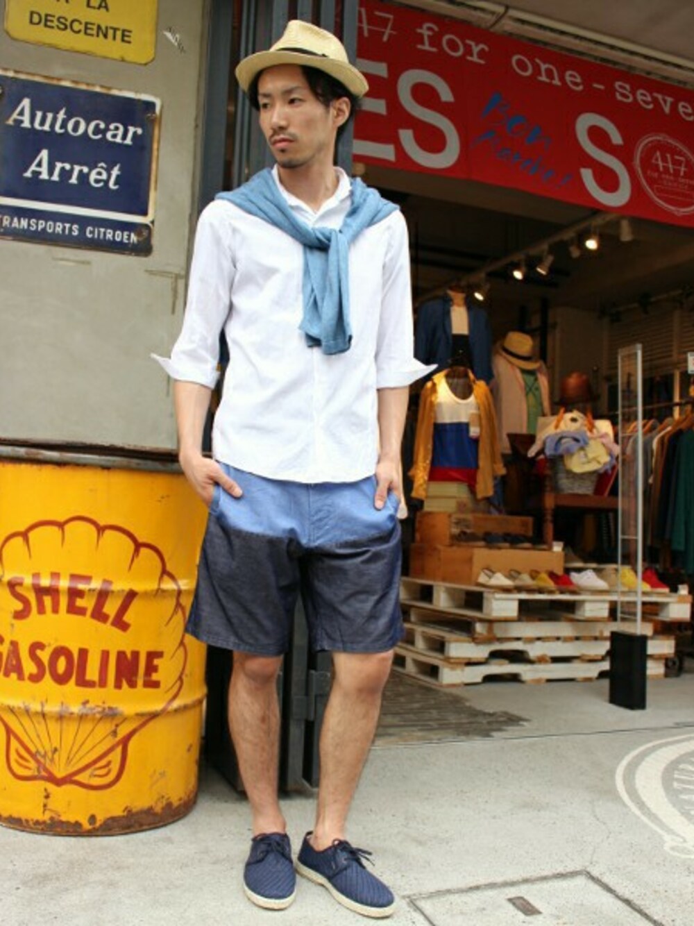 清涼感のある夏らしいコーディネート。 バイカラータイプのショーツがアクセントとなっています。