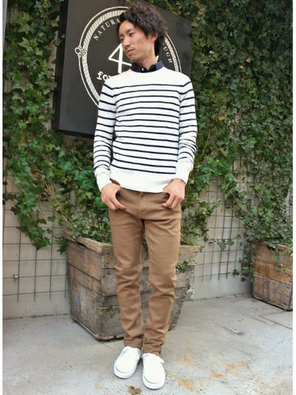 417byEDIFICE新宿店スタッフAのニット/セーター「【MENS JOKER9月号掲載】◇9GアゼボーダーC/Nニット」を使ったコーディネート