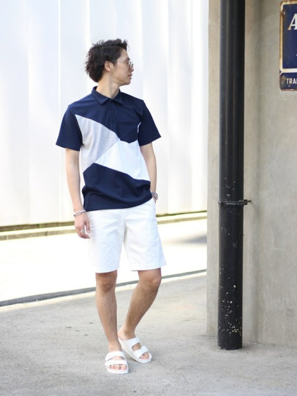 モダンなパネルデザインが映えるポロシャツをメインに、夏らしくクリーンな白色のショーツを合わせシーズン感を演出。