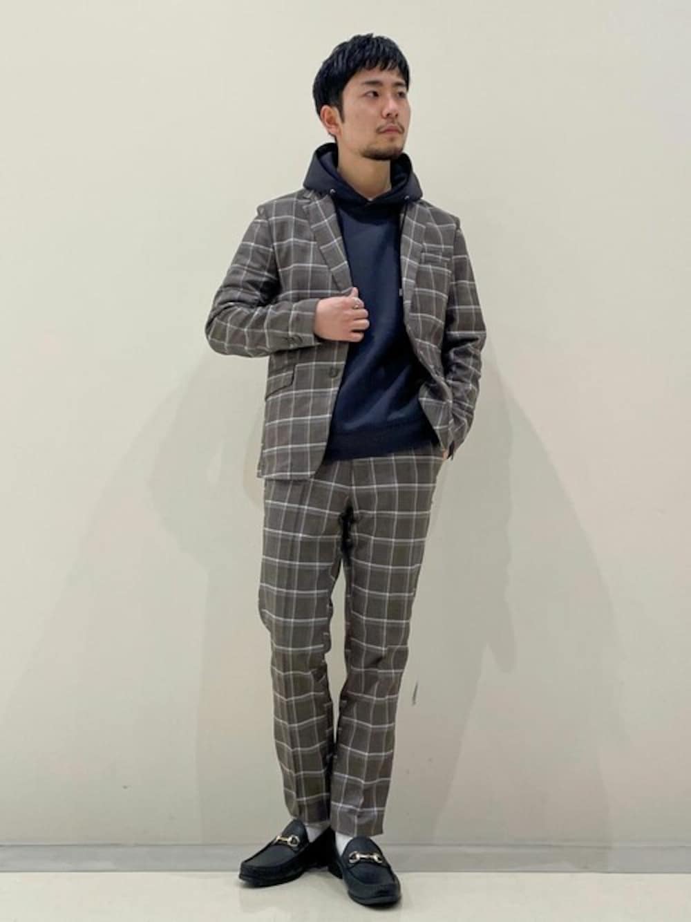 【カジュアルセットアップスタイル】 チェックがかなり印象的なので、他はシンプルな無地で合わせるのがおすすめです。 【OUTER】 普段サイズ:M 着用サイズ:M 【INNER】 普段サイズ:M 着用サイズ:M 【PANTS】 普段サイズ:M 着用サイズ:M 【SHOES】 普段サイズ:26.0 着用サイズ:26.0
