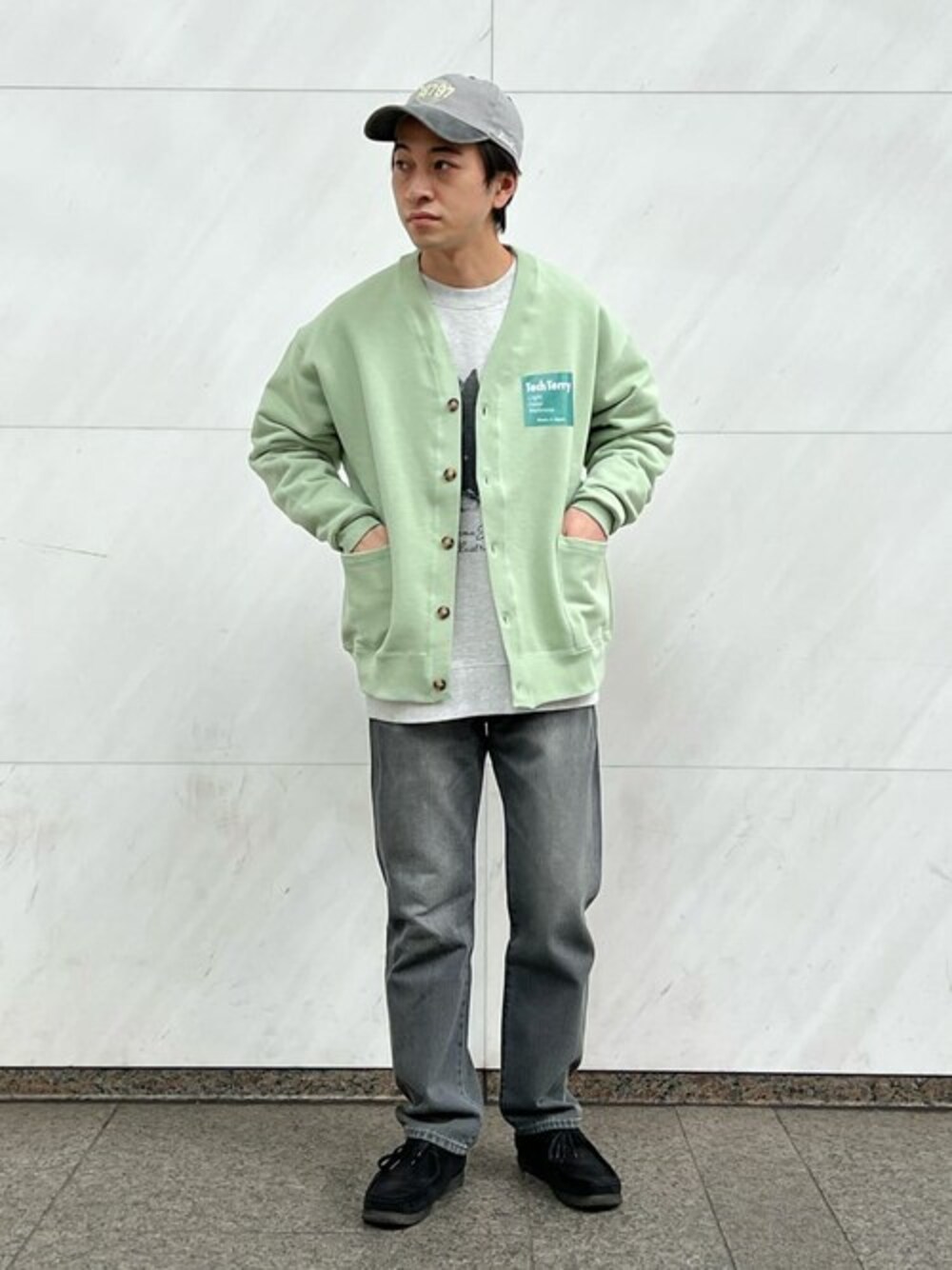 テックテリーカーディガン 身長:165㎝ / 普段サイズ:SorM/ 着用サイズ:M サイズ感:ゆったりとしたボックスシルエット 素材感:スウェットのような生地 着心地:軽く伸縮性もあり動きやすい
