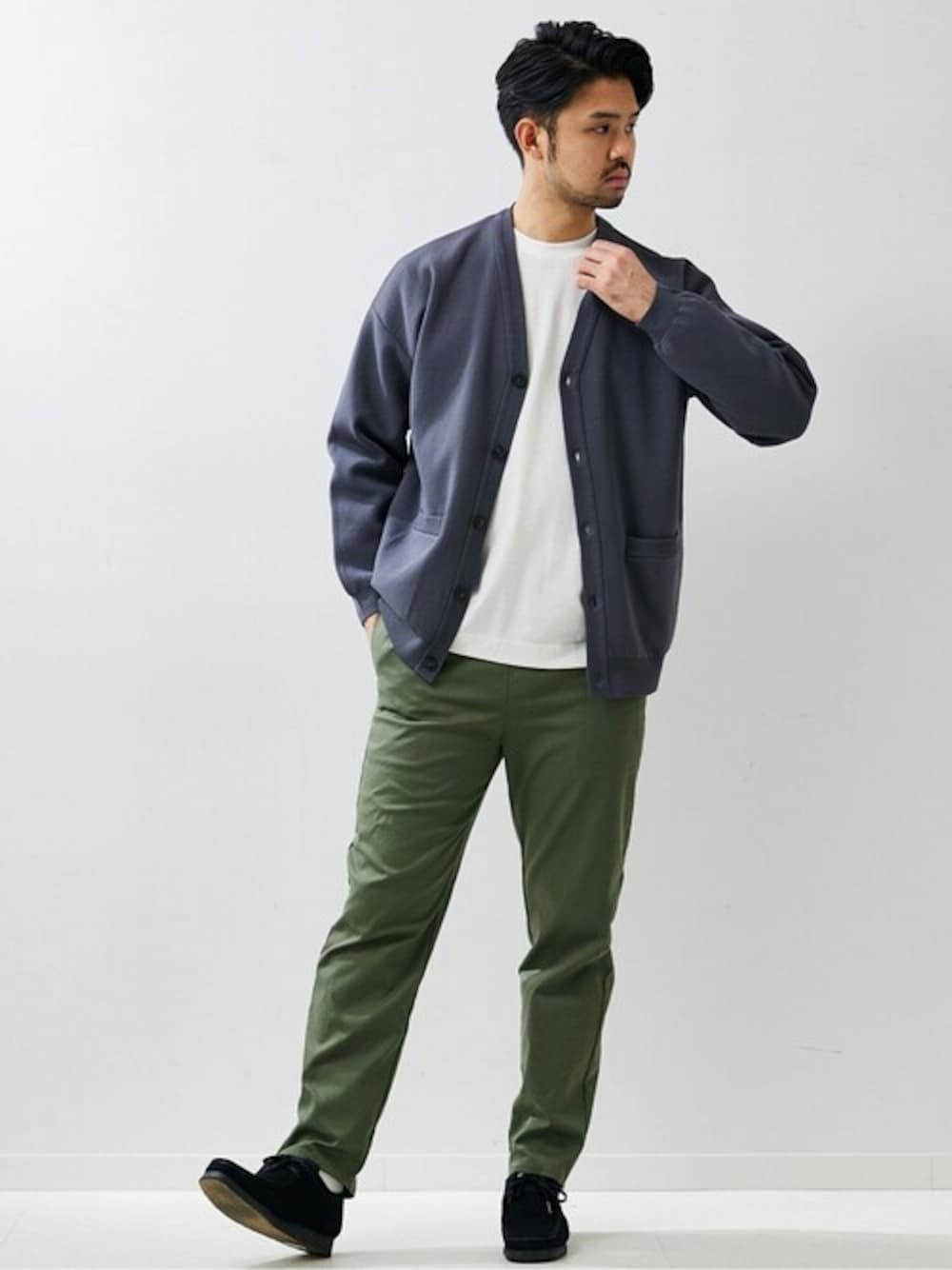 【CAVE】 ベーシック イージーパンツ 30代前半/身長:183cm/体型:ガッチリ/普段サイズ:XL/着用サイズ:L コーディネートポイント:カーキ×グレーのシックな色合わせ。シンプルなアイテム同士を上品にまとめています。 着心地・サイズ感:Lサイズでややリラックスして着用できます。コットン見えでさらりとしたはきごこちです。 ◆Instagram ⇒ towerofterada Instagramも更新しております。 お気軽にフォロー、コメントもお待ちしております。